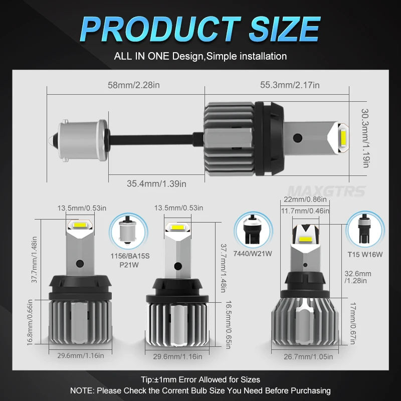 2x 1156 BA15S LED T15 W16W 7440 7443 W21W P21W 1860 Bulb Led Reverse Light Canbus 921 912 CSP CHIP DRL Backup Light Brake Lamp