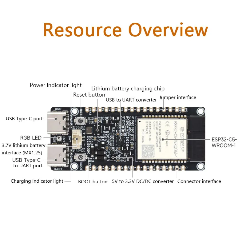 ESP32-C5-WIFI6-KIT-N16R8 ESP32-C5 Development Board ESP32-C5-WROOM ESP32 C5 Dual Wi-Fi 6 16MB Flash for ESP-IDF Arduino RISC-V