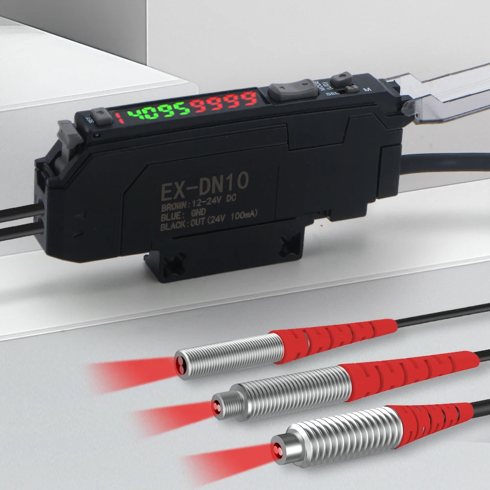 GTRIC Diffuse Reflective Fiber Optic Sensor Kit with Separate Amplifier High Precision12-24V DC NPN NO/NC Photoelectric Sensor