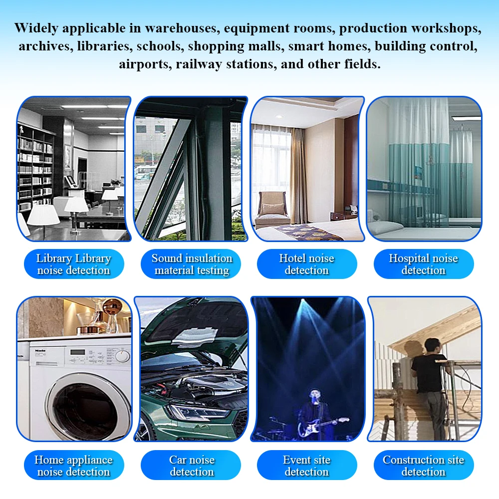 It is designed for high-accuracy sound and noise detection, ideal for industrial sound monitoring, home audio testing, and environmental noise tracking.
