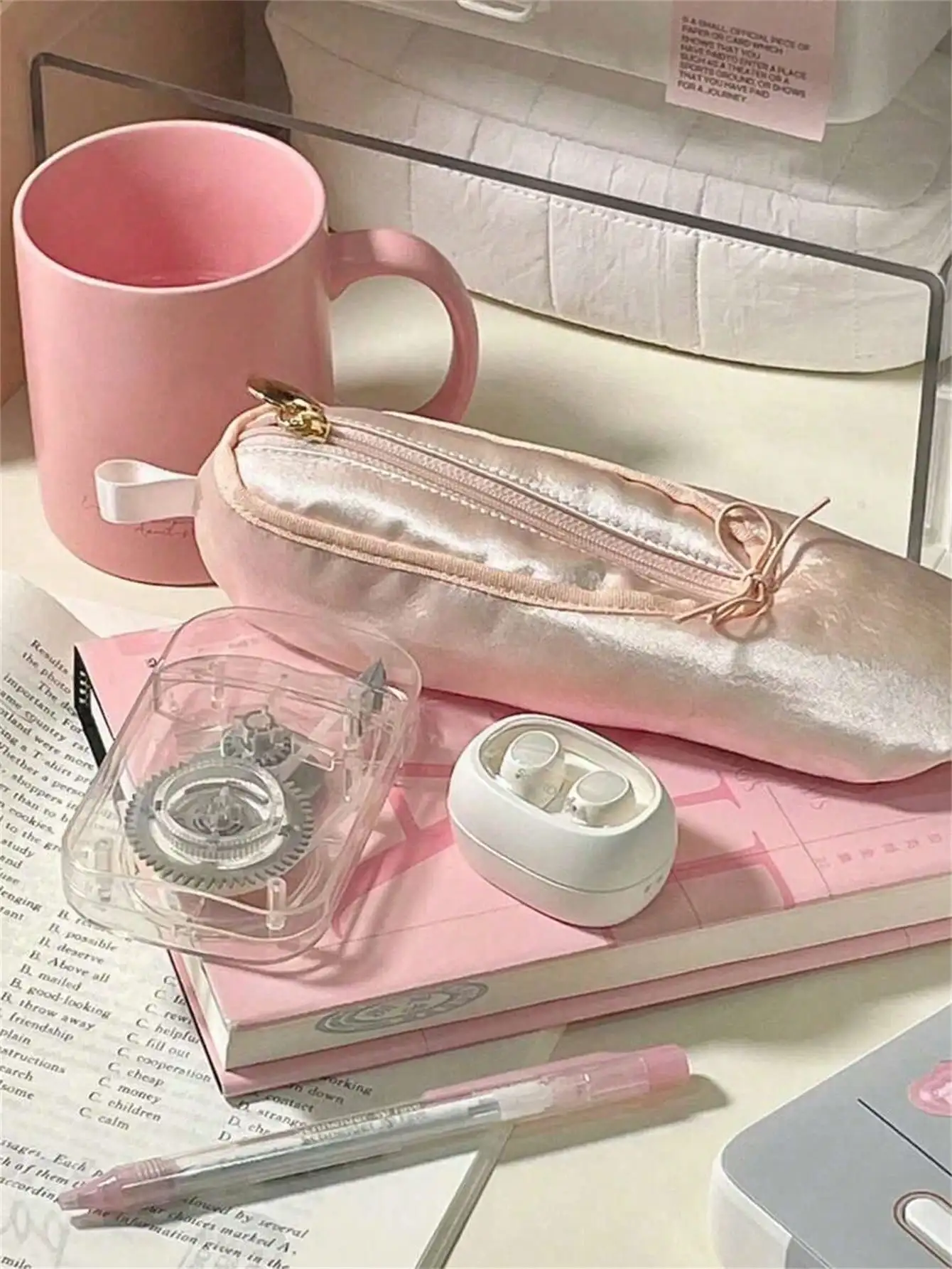 1pc Vintage French Style Ballet Shoes Shaped Handmade Pencil Case Makeup Pouch,Portable Exquisite Multifunctional Storage Bag