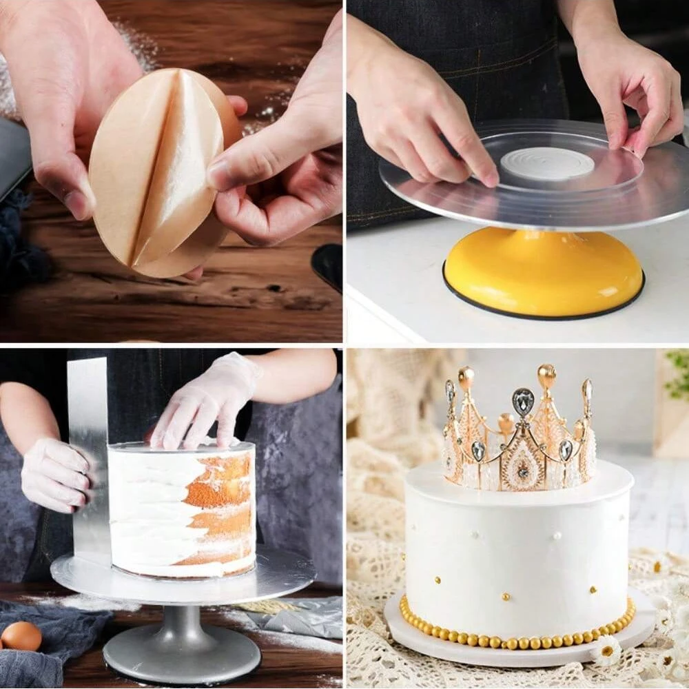 2PCS Round Edge Cake Disk Circle Acrylic Baking Tray Stand DIY Reusable Cake Topper Nonstick Acrylic Cake Base Board Baking Tool