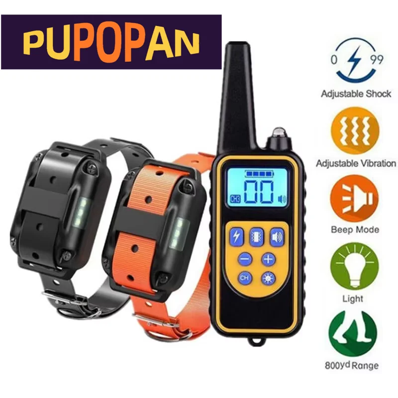 800m Electric Dog Training Collar Waterproof Pet Remote Control Rechargeable training dog collar with Shock Vibration Sound