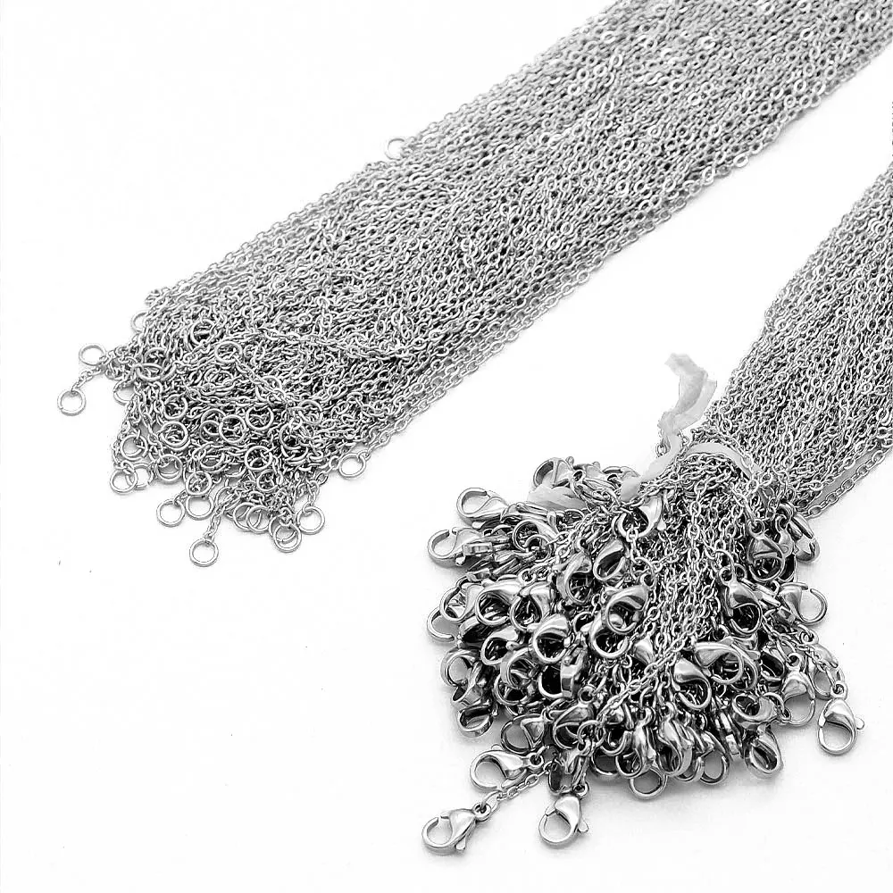 100pcs/Lot Bulk Wholesale 304 Stainless Steel Cable Link Rolo Chain Necklace for DIY Jewelry Making Silver Color 45-50cm Women