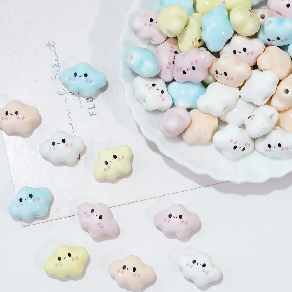 10pcs Colorful Chubby Smiling Cloud White Ceramic Beads DIY for Jewelry Making Bracelets Accessory Bead