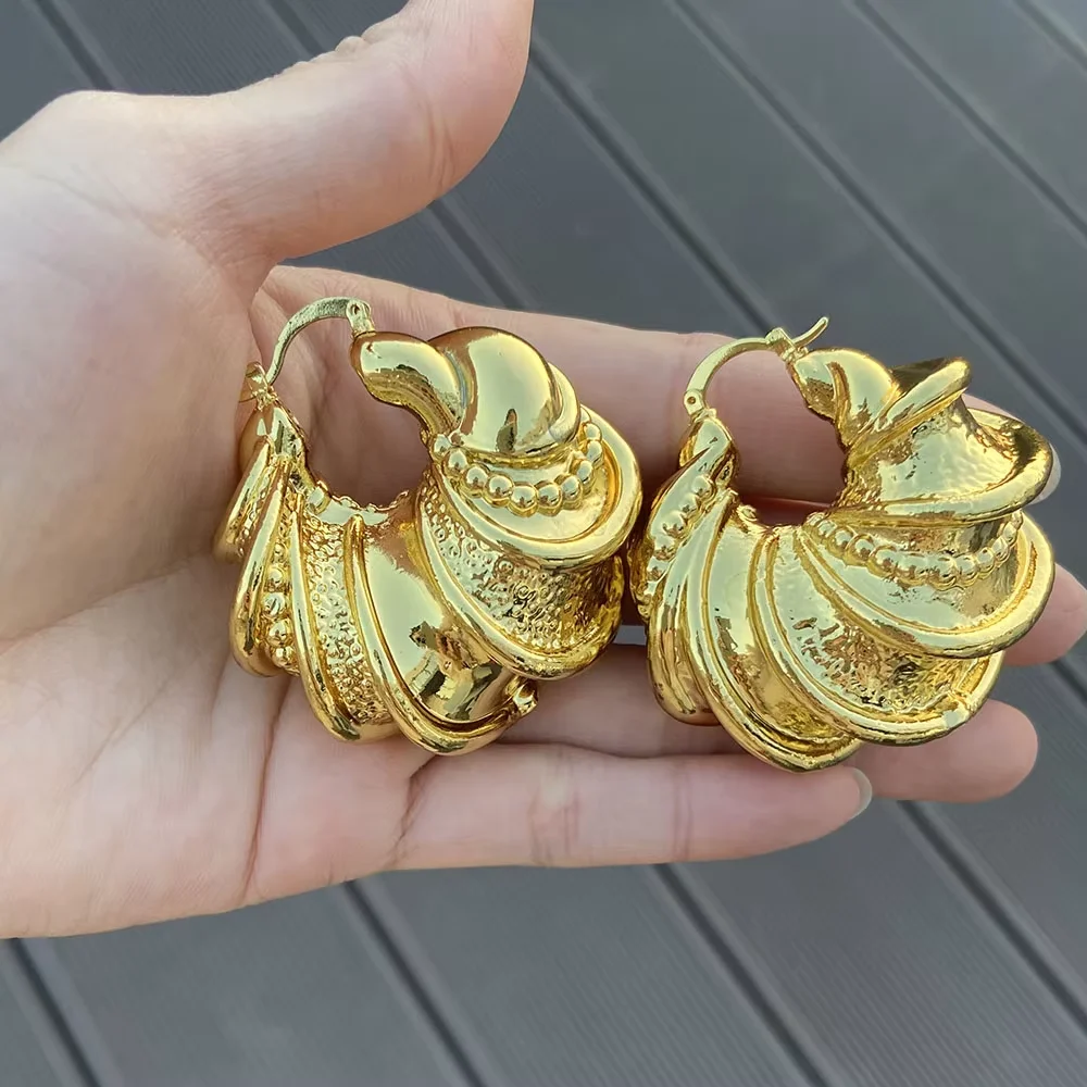2023 The New Popular 45mm Hoop Earrings for Women 18k Gold Color 5mm Flower Shape Earring Casual Earrings Daily Wear