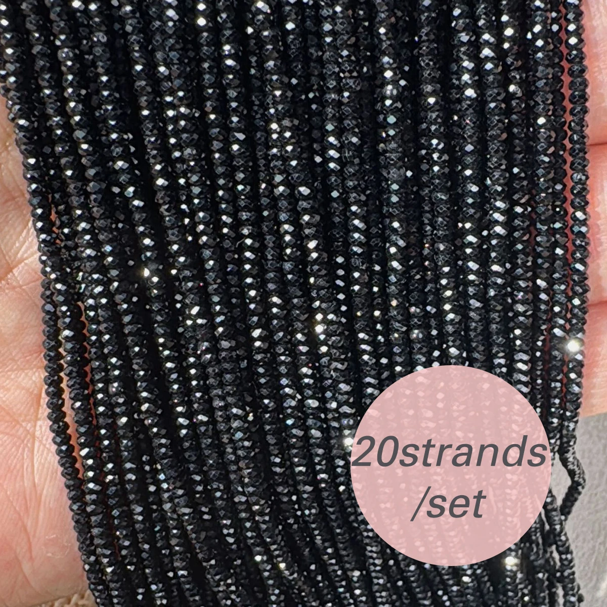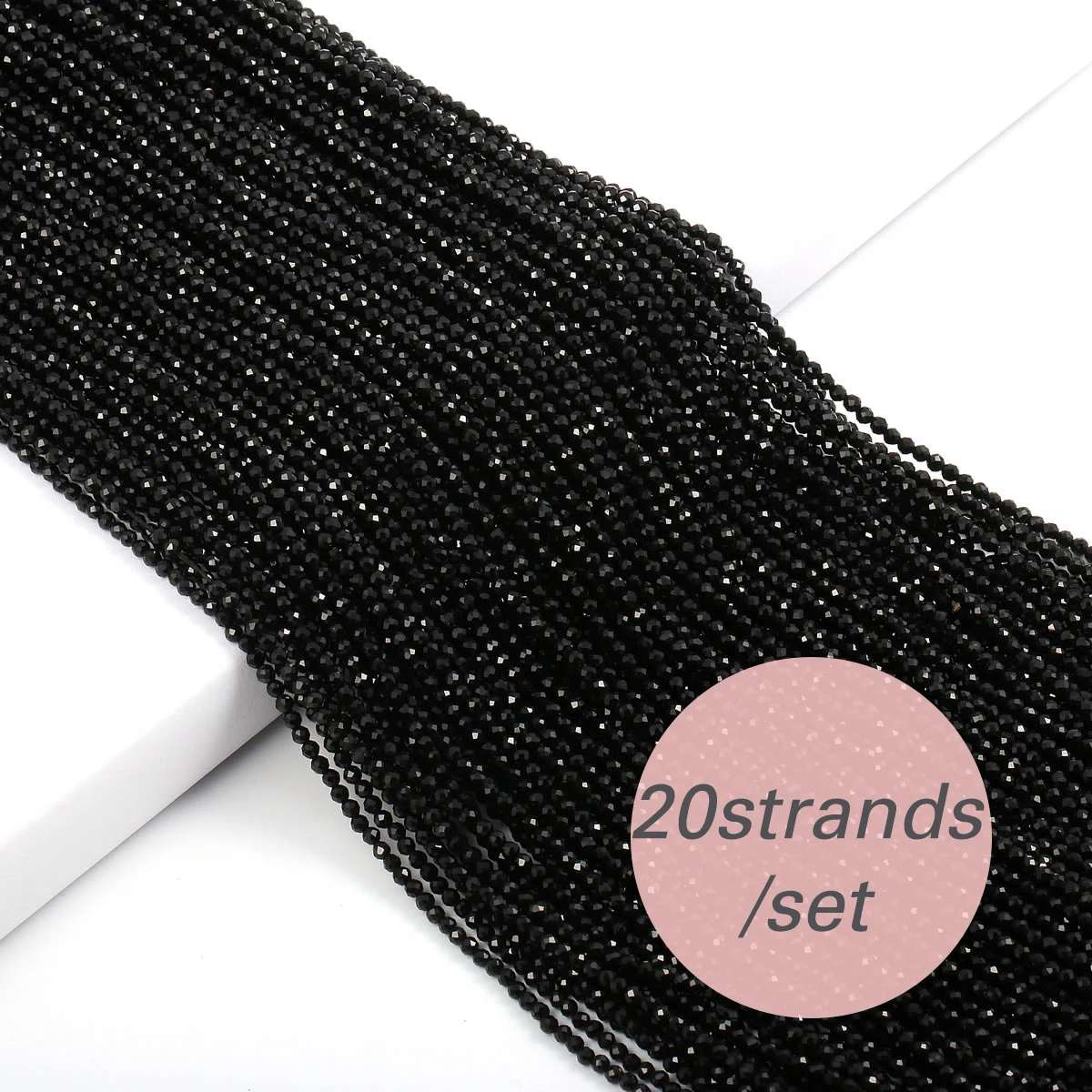 20strands 2/3mm Black Spinels Stone Beads Faceted Loose Bead for DIY Women Men Necklace Bracelets Jewelry Making Accessorie 38cm