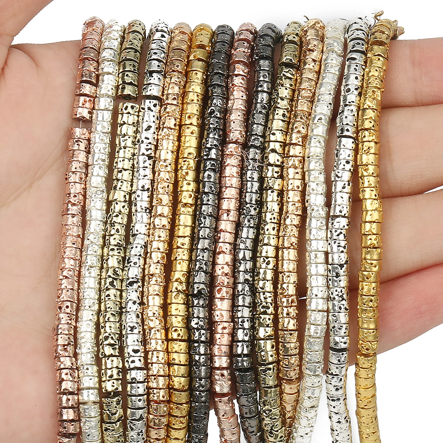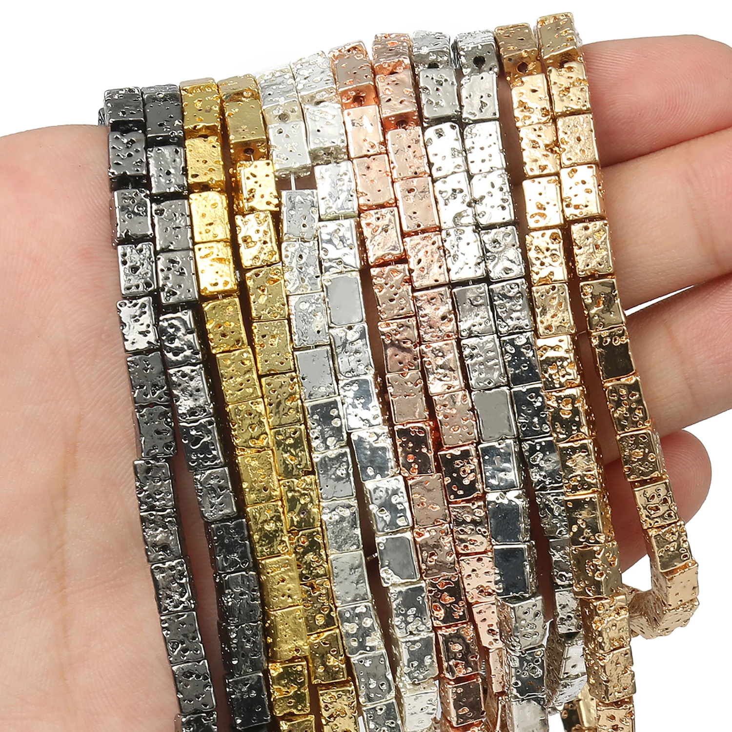 Gold Silver Color Natural Volcanic Lava Stone Beads Flat Round/Cube/Square Loose Beads for Jewelry Making DIY Bracelet Necklace