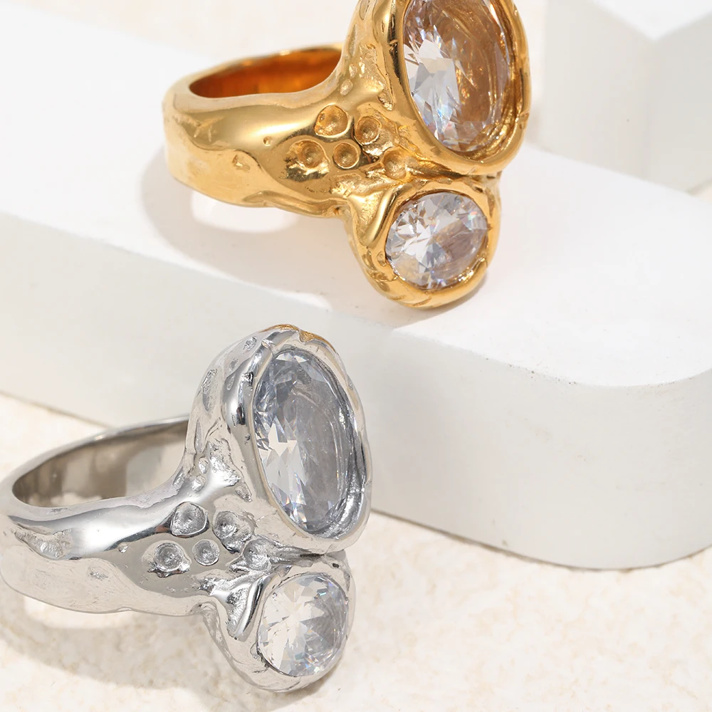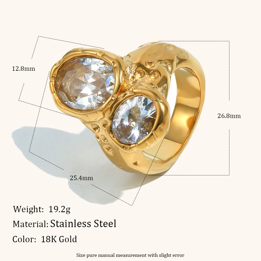 La. Muses Luxury Shiny Double Size Zircon Stainless Steel Women's Ring PVD Gold Plated Fashion Jewelry Accessories