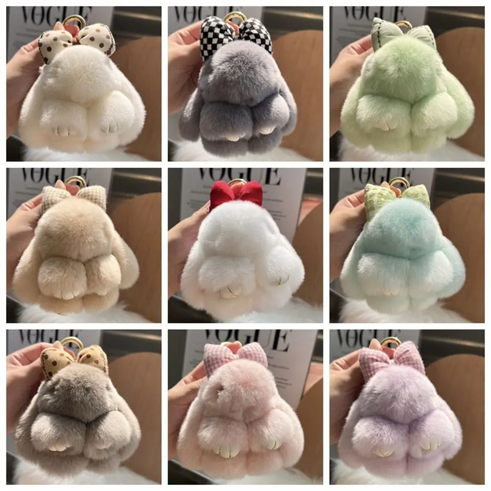 Plush Key Chains Bag Hanging Pendant Car Key Ring Mini Rabbit Hair Bow Bag Strap Cute Bunny Couple Keychain