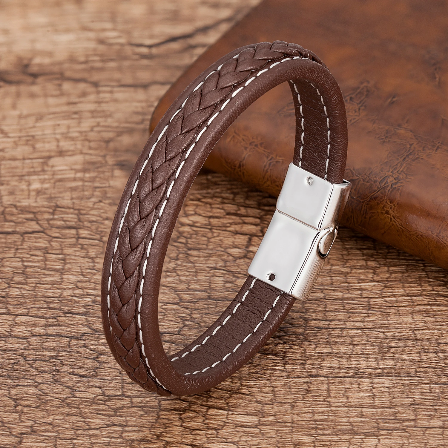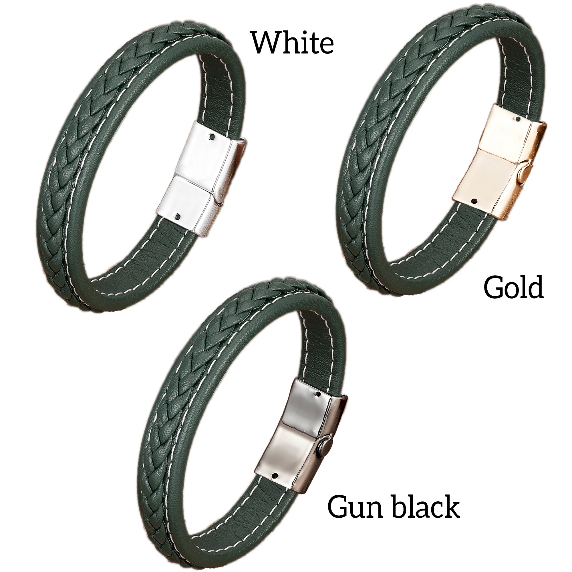 Punk Men Jewelry Red Black Braided Leather Bracelet Metal Magnetic Buckle Bracelets Charm Male Wrist Band Pulsera Hombre