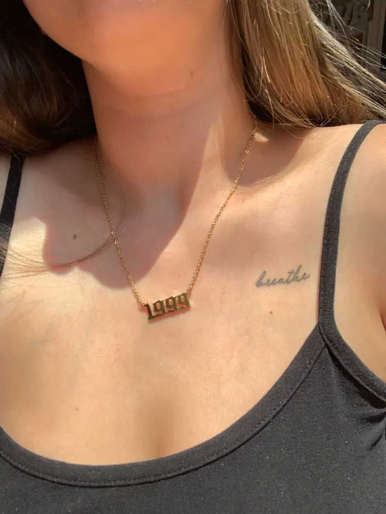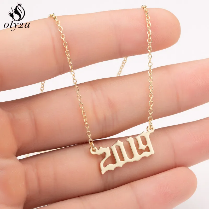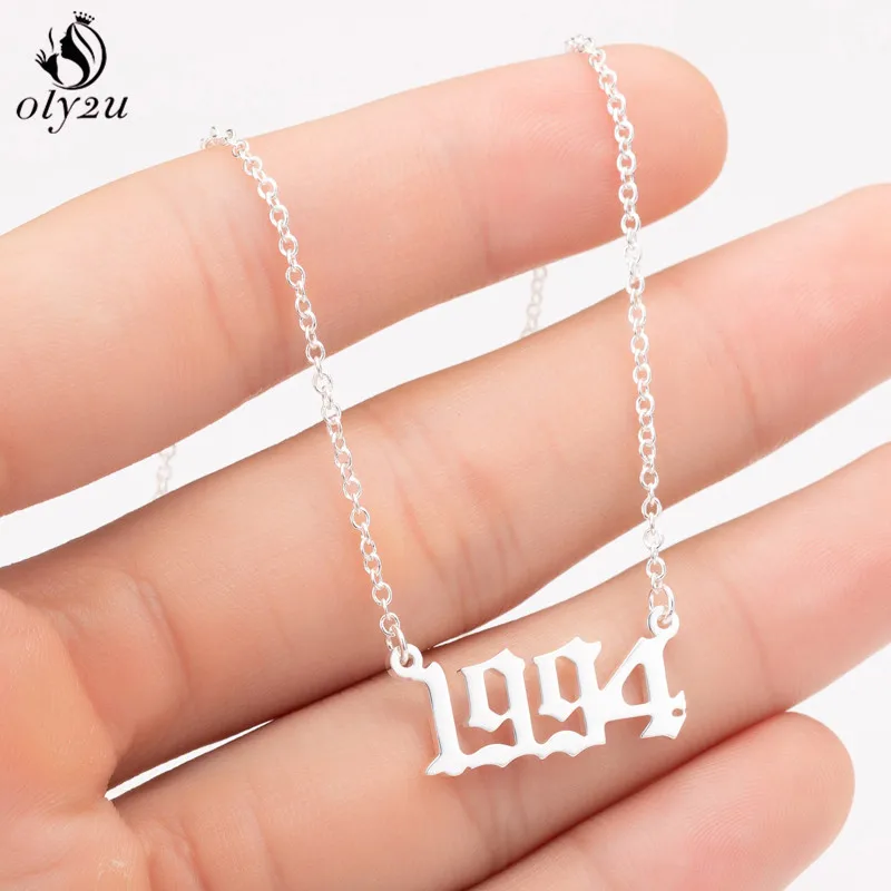 Punk Old English Year Number Necklaces for Women Men 2024 1980 1990 2000 2010 2020 Custom Birth Year Necklace Christmas Gifts