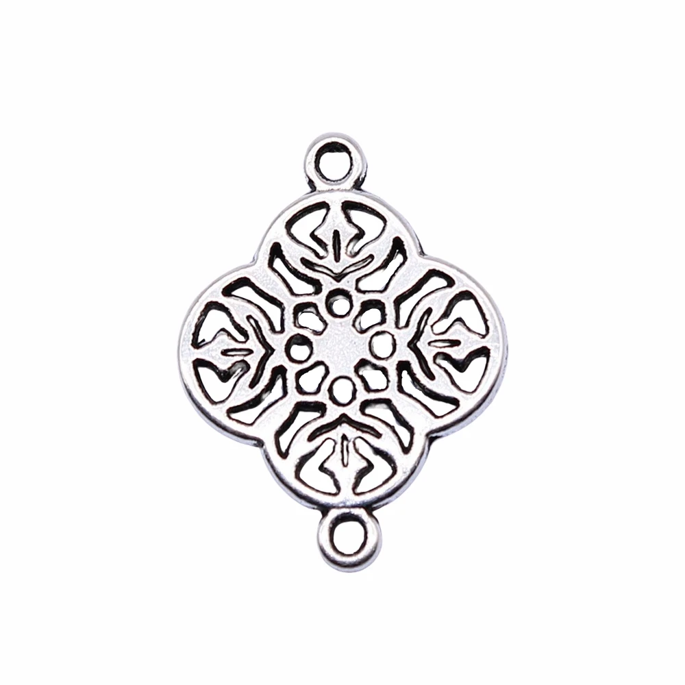 WYSIWYG 10pcs 20x15mm Antique Silver Color Hollow Flower Connector Charms For Jewelry Making DIY Jewelry Findings
