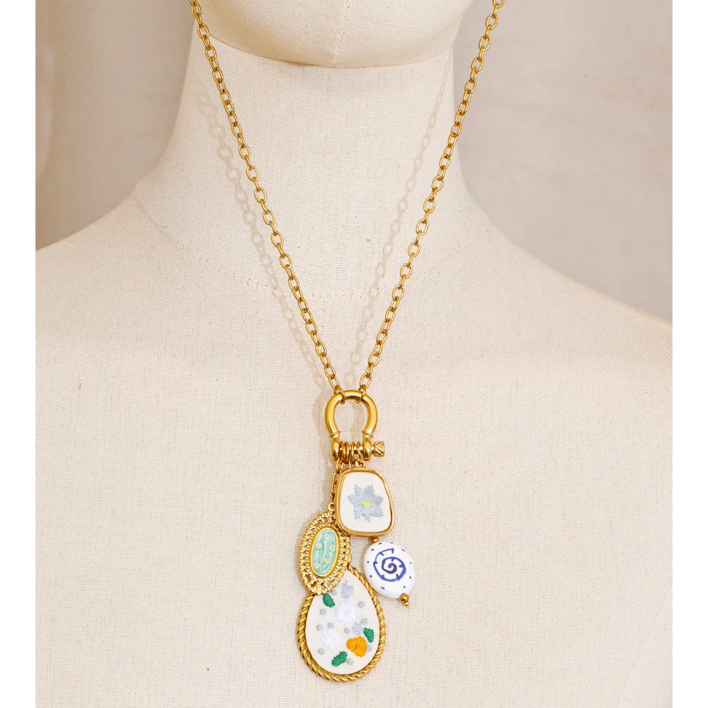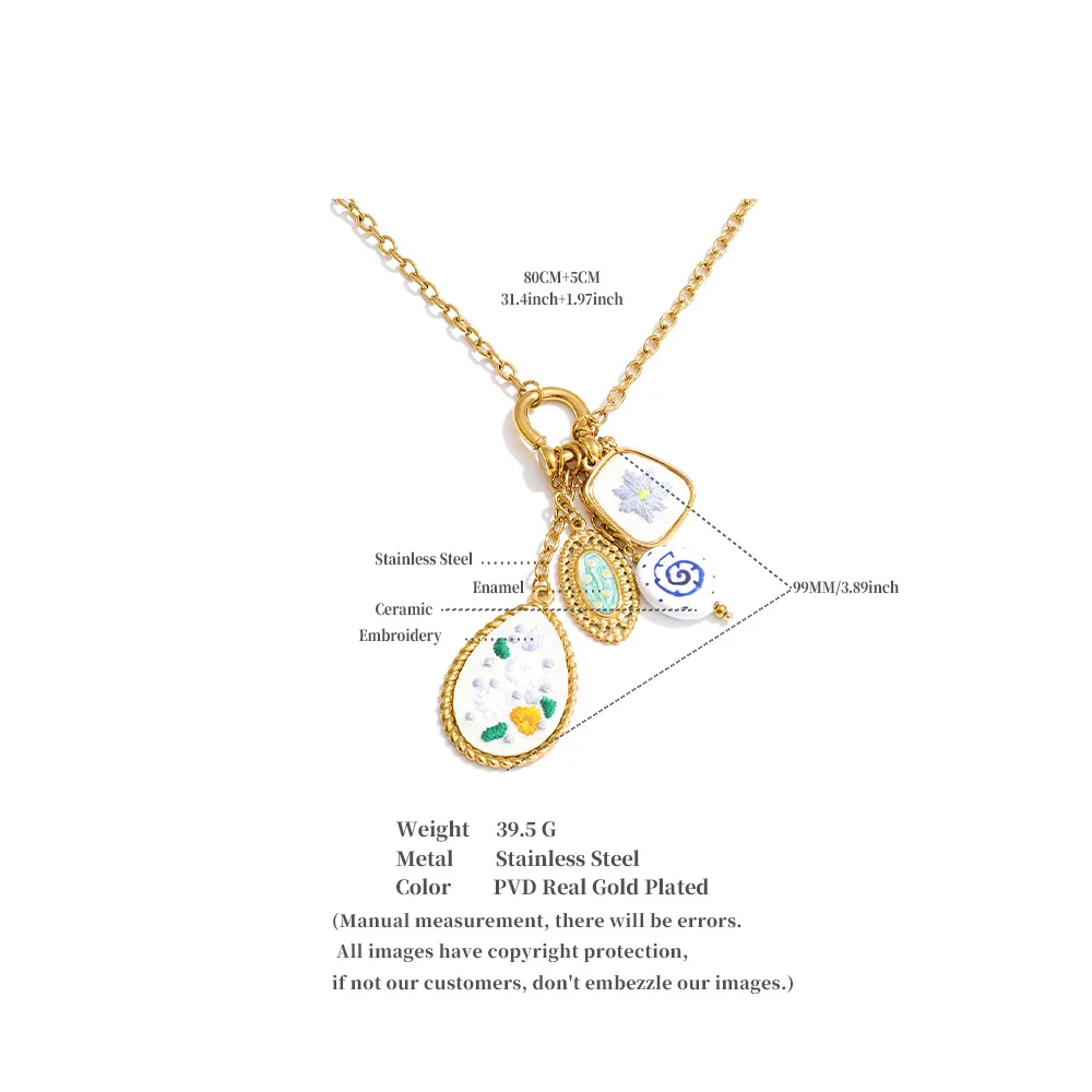 Yhpup 80+5cm Stainless Steel Embroidery Flower Pendant Long Necklace 2026 Spring Summer New Arrivals Statement Fashion Jewelry