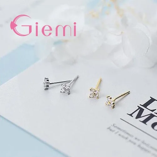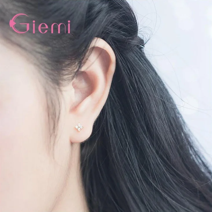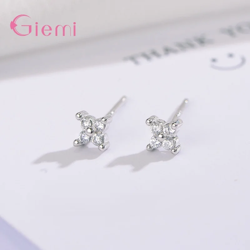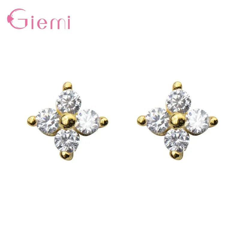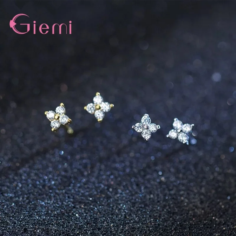 100% Real 925 Sterling Silver Clover Stud Earrings Bright Zircon Earrings For Women Girl Fashion Trendy Jewelry