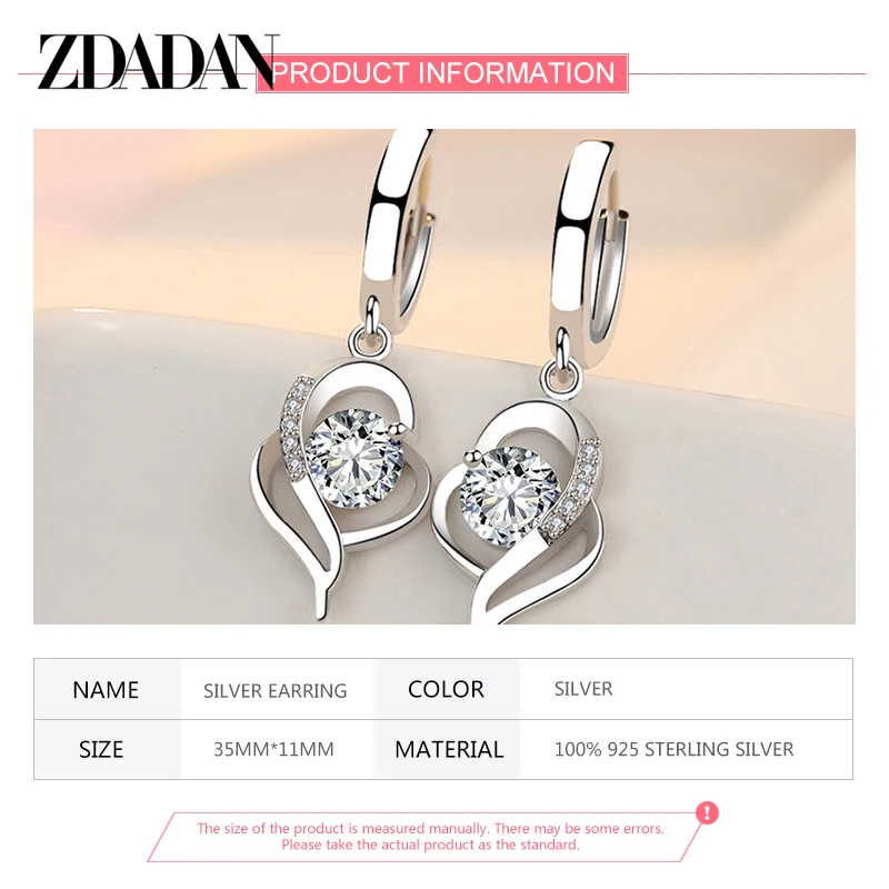 ZDADAN 925 Sterling Silver Crystal Zircon Earring For Women Fashion Jewelry