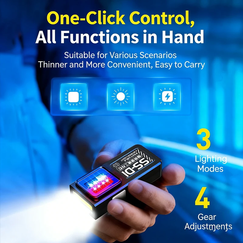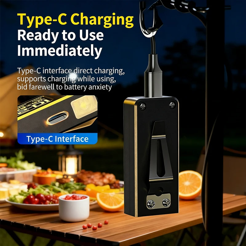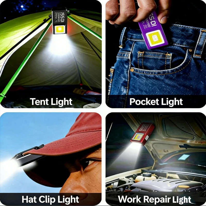 Powerful Mini COB LED Keychain Flashlight USB C Rechargeable Hanging Work Light Waterproof Keyring Camping Walking Pocket Lamp