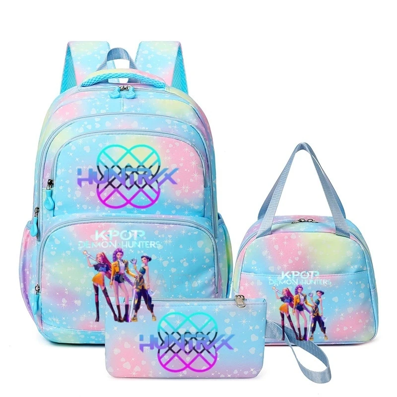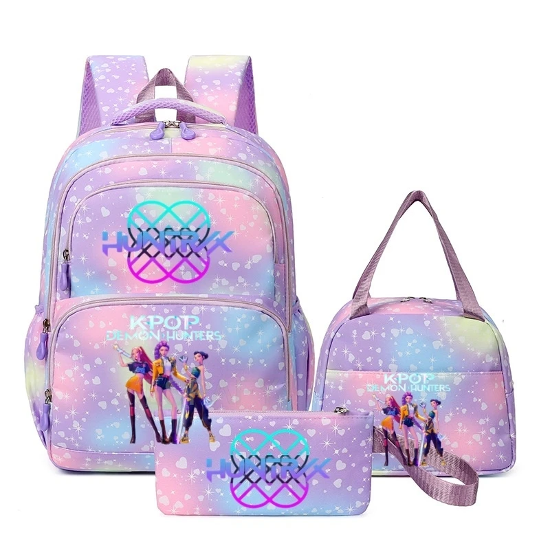 Hot 3pcs KPop Demon Hunters Huntrix Backpack Women Fashion Travel Saja Boys Rumi Zoey Mira Backpacks Outdoor School Bag 3PCS