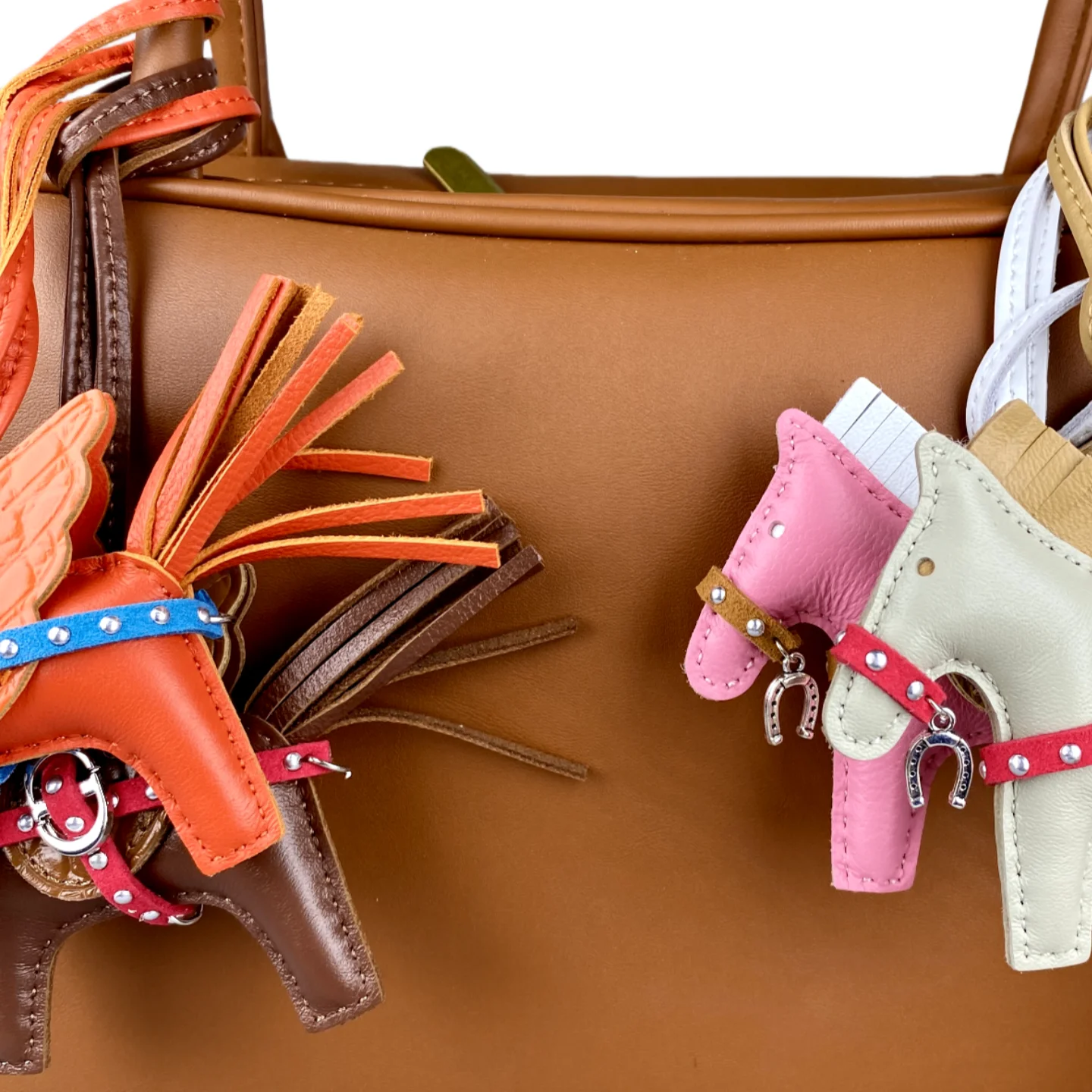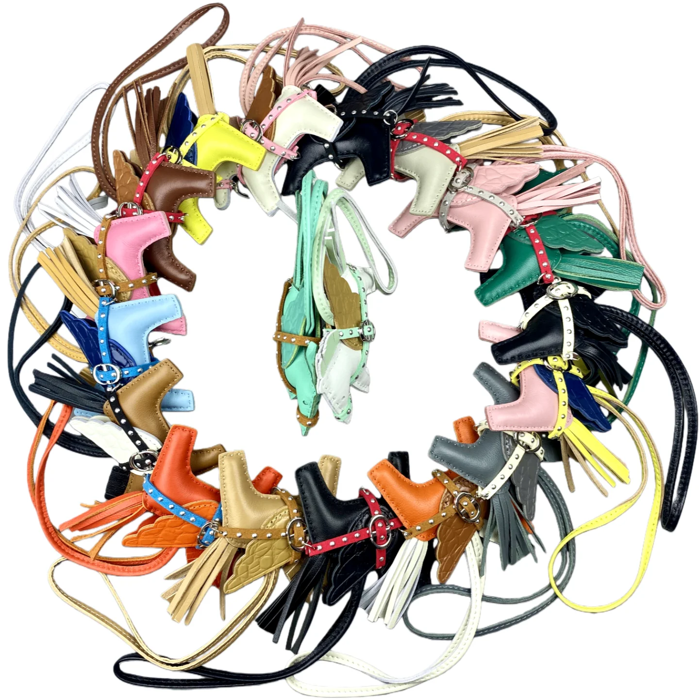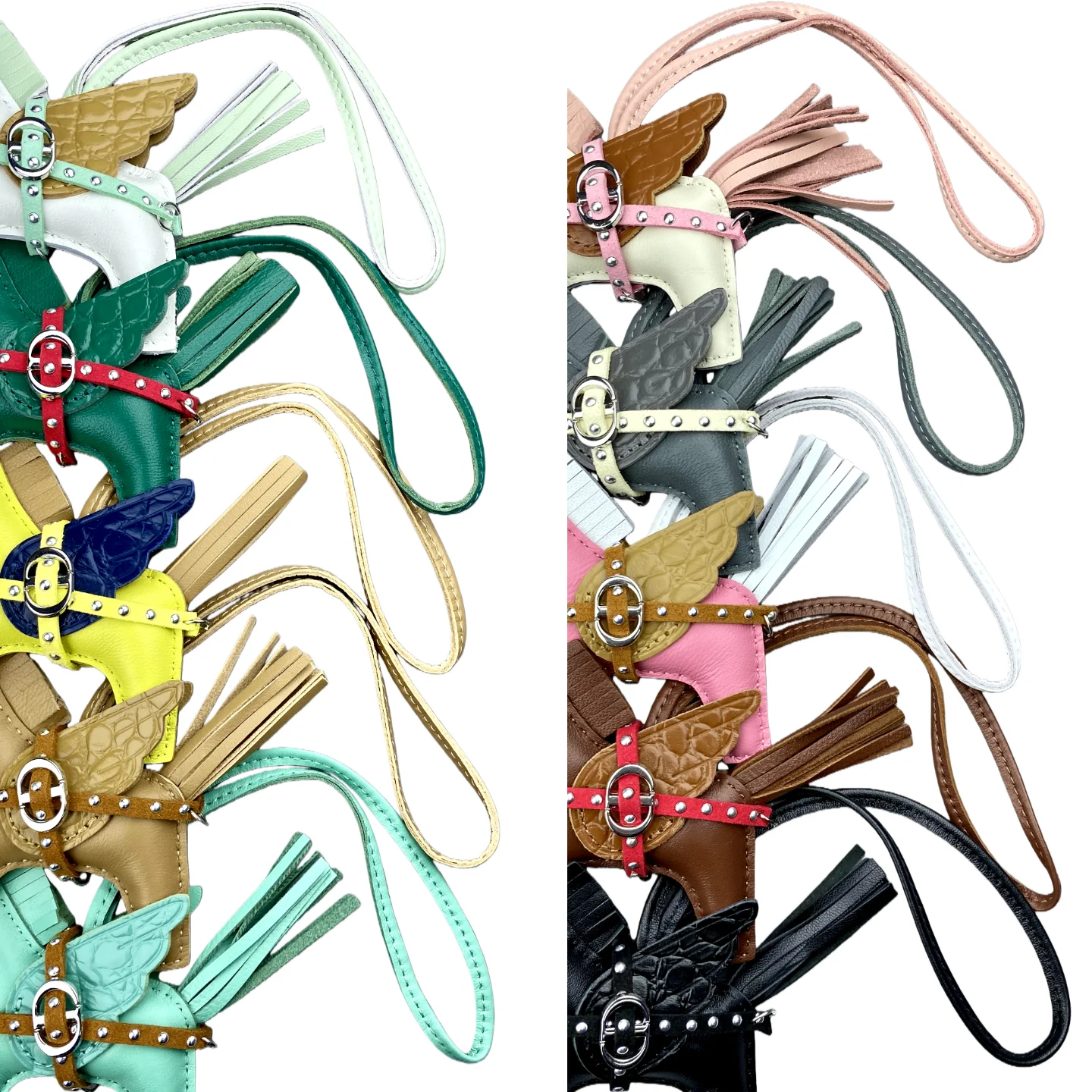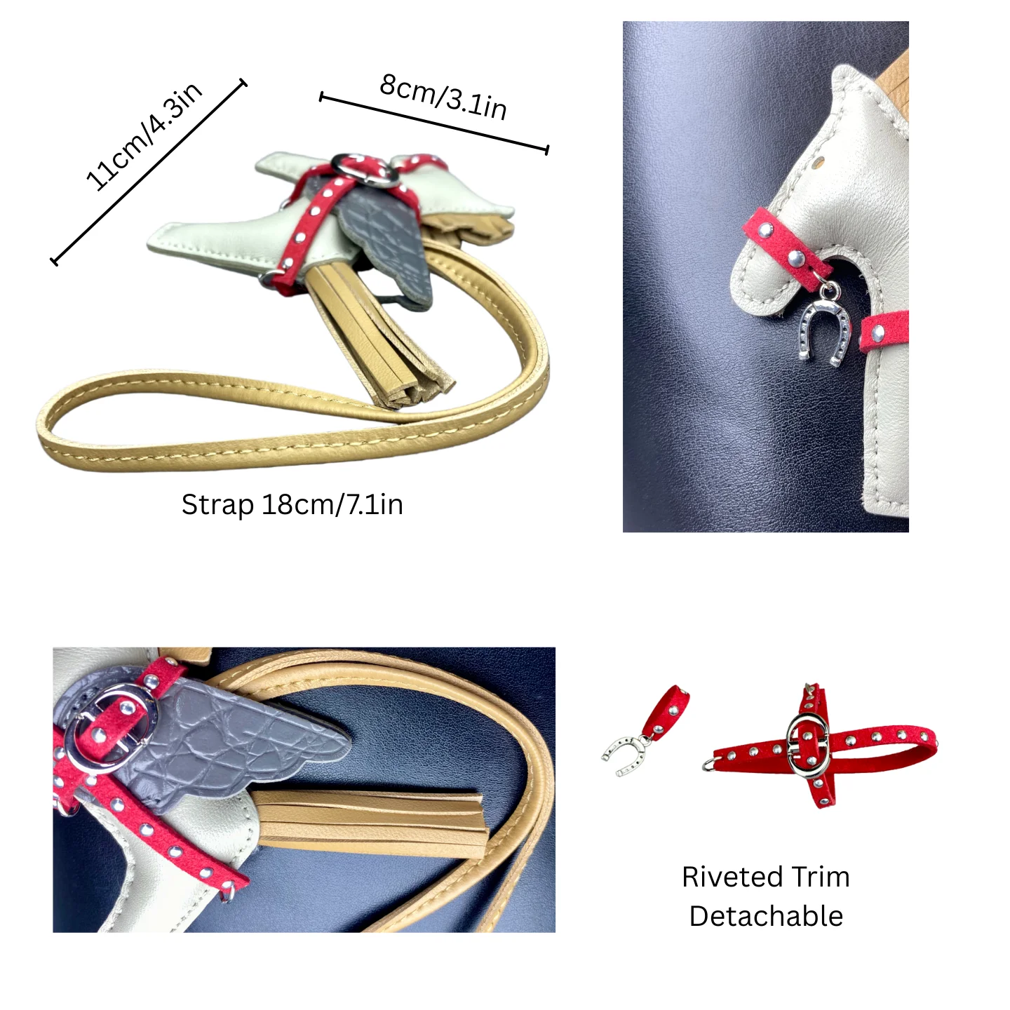 Soft Genuine Sheepskin Pegasus Pony Charm with Crocodile-Embossed Wings And Detachable Rivet Rope Accents Premium Gift Accessory