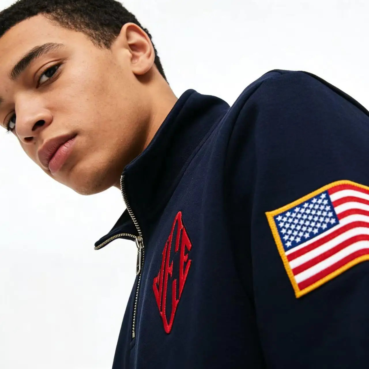 Vintage Embroidered Sweatshirt Y2K Stand Collar Quarter Zip Pullover Oversized Casual Sports Streetwear Mens Unisex