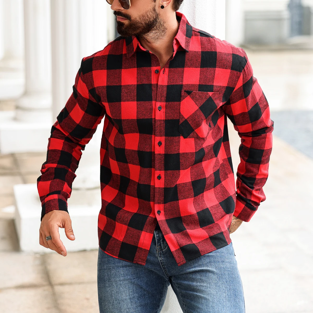 new men's checkered shirt that is trendy, versatile, casual, fashionable, and fits snugly for office, outdoor sports, fitness,