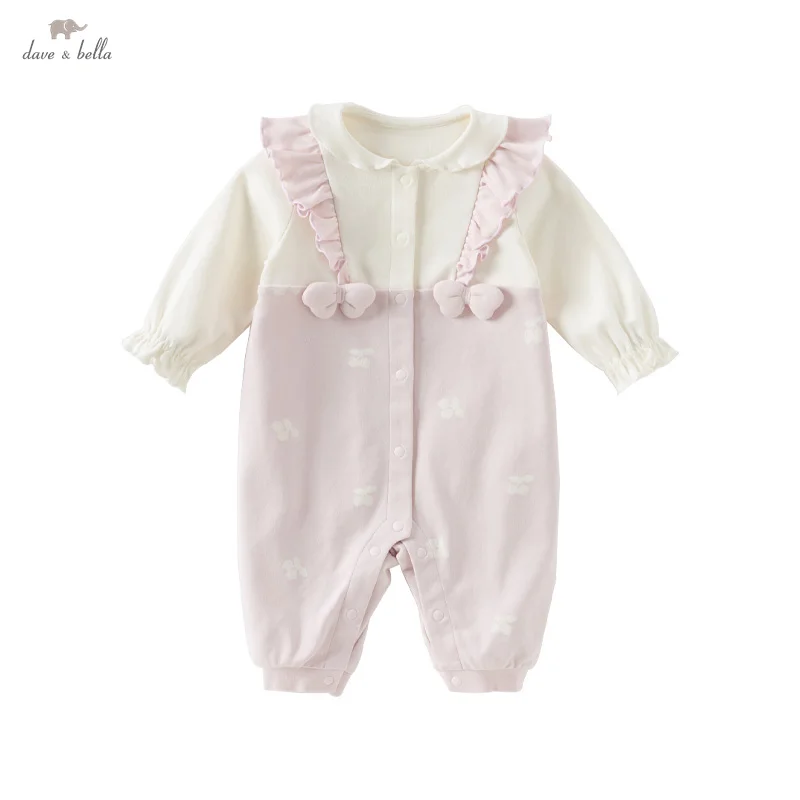Dave Bella Baby Jumpsuit Newborn Creeper 2025 New Spring Girl's Romper Comfortable Casual Cotton Cherry Print Cute DB1251049