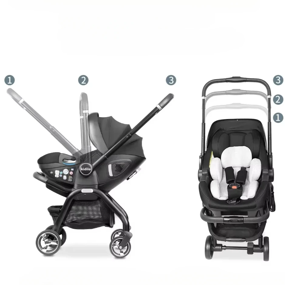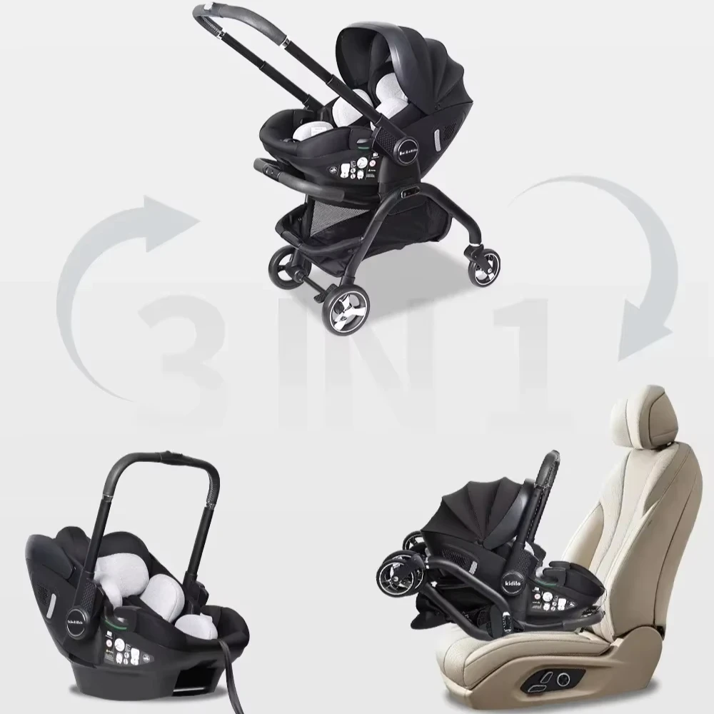 Kidilo 3-in-1 Portable Baby Stroller Newborn Baby Sleeping Basket Multi-function Car Seat Adjustable Stroller Armrests EU Stock