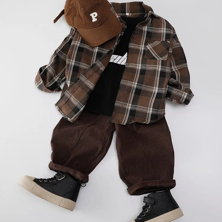 1PCS Autumn Blouses & Shirts New Spring Boy Shirt Plaid Long-sleeved Children's Fashion Tops Boys Handsome Spring Jacket Shirt