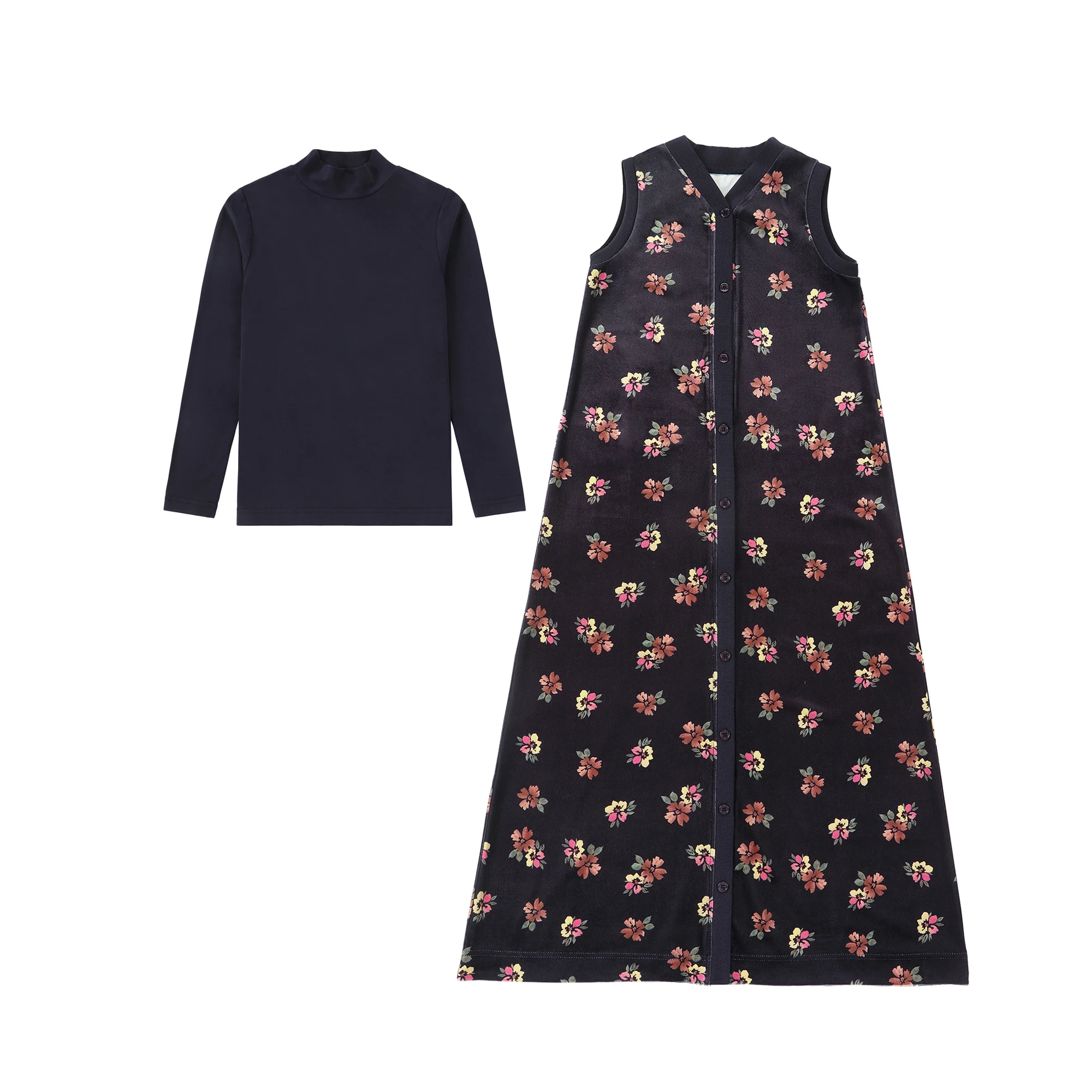 AS Teen Robes Floral Printing Velour Sleeveless Teen Maxi Dress and Modal Shirt Clothing Set