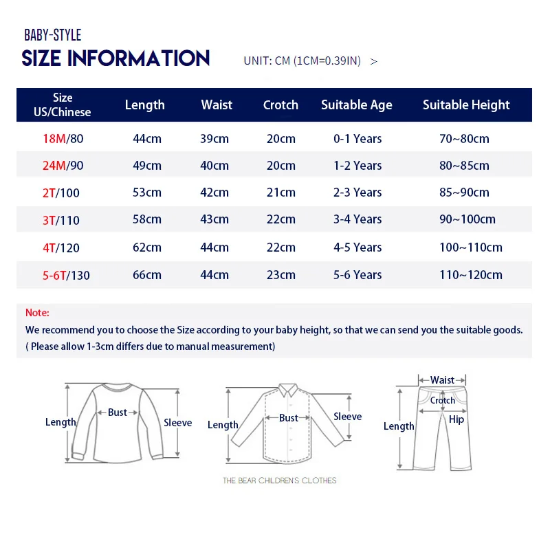[Size]: 18M/80; 24M/90; 3T/100; 4T/110; 5T/120; 6T/130;