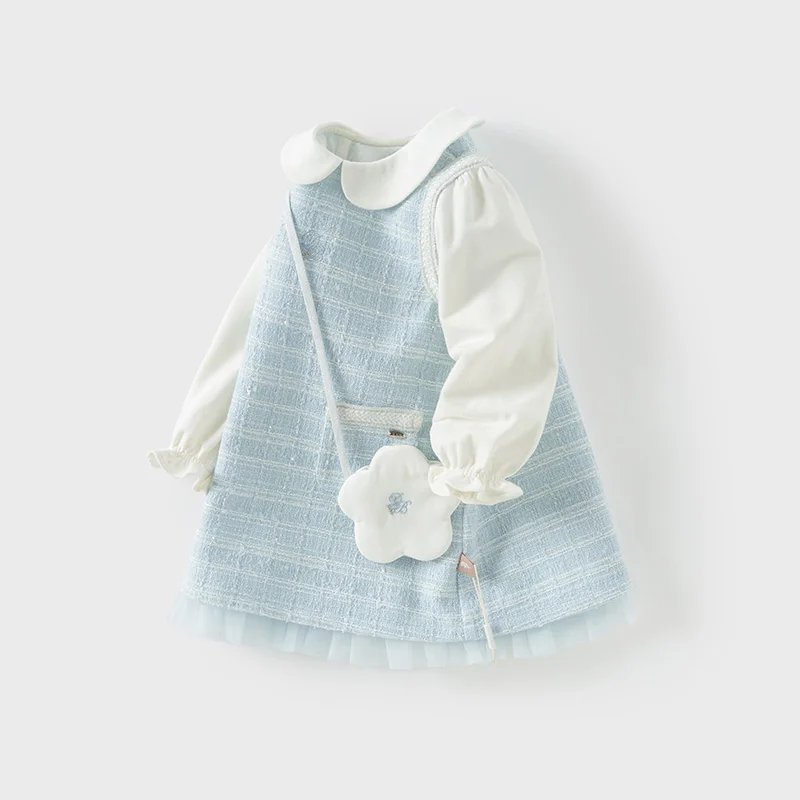 Dave Bella Children's Dress 2025 Spring New Girls Baby Gentle Cute Fake Two piece Baby Elegant Princess Dress Party DB1250299