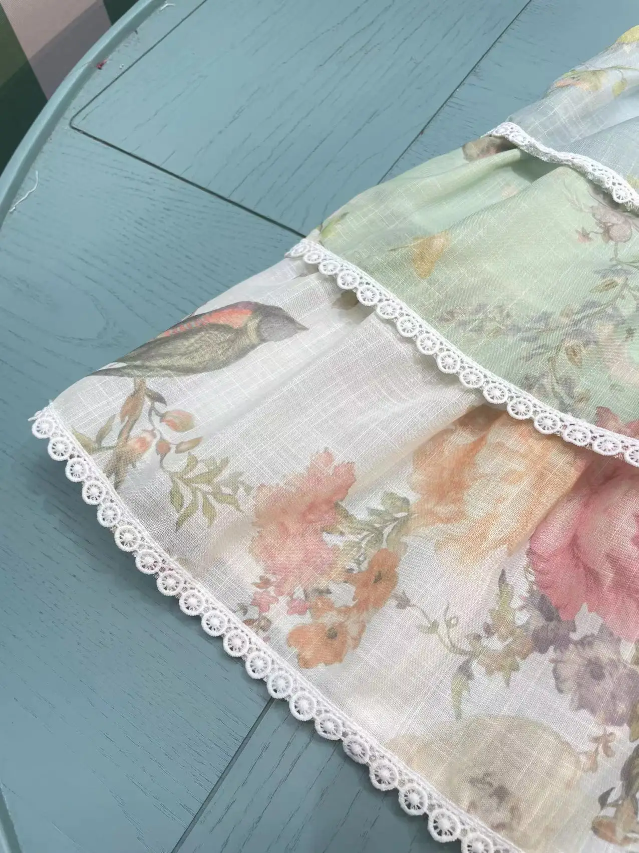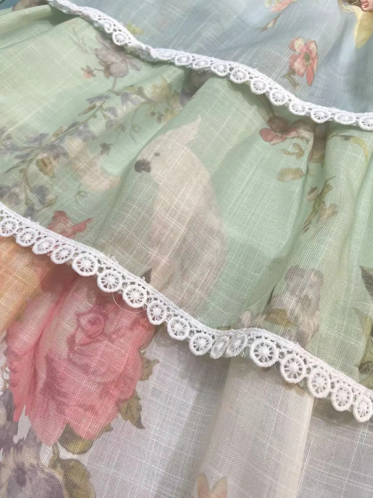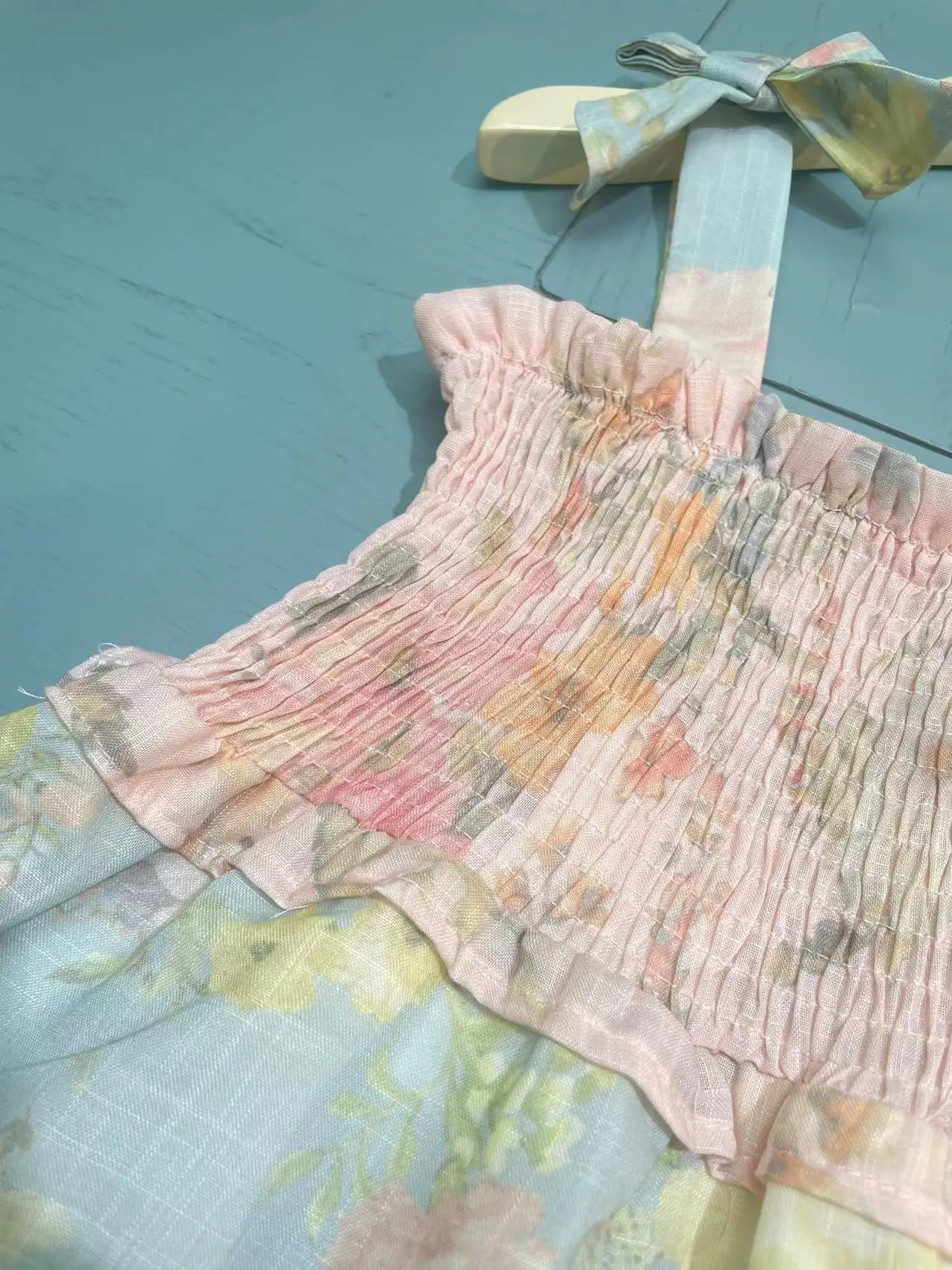 High end Kids Clothes Summer New Fashion Design Floral Printed Suspender Dress For Girls Colorful Tiered Skirt
