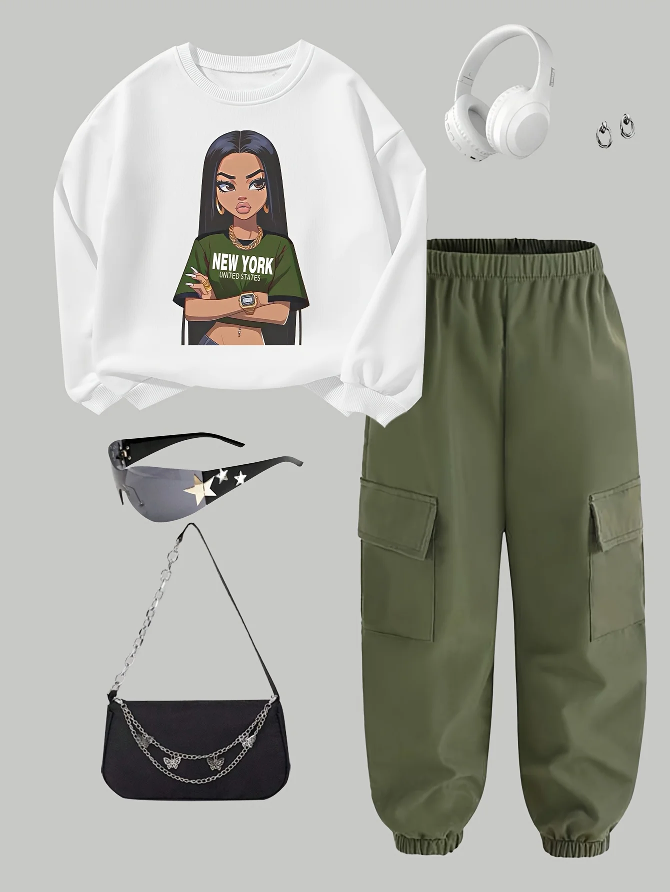 Kids Clothes Girls Letter Print Casual Sweatshirt&Cargo Pants Set Girl Autumn Streetwear Style Sweatshirt Two-Piece Pocket Cargo