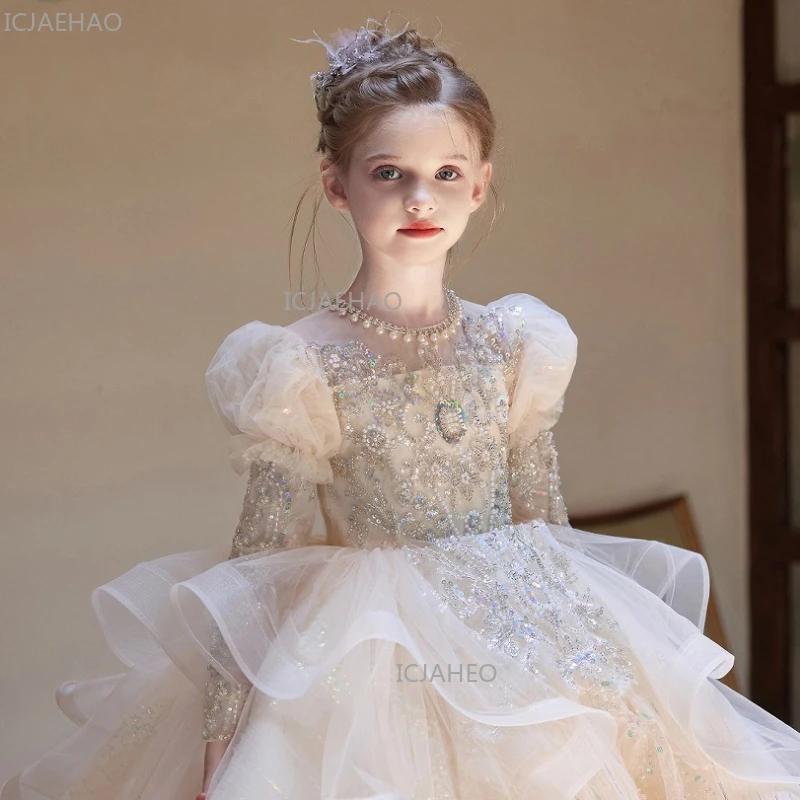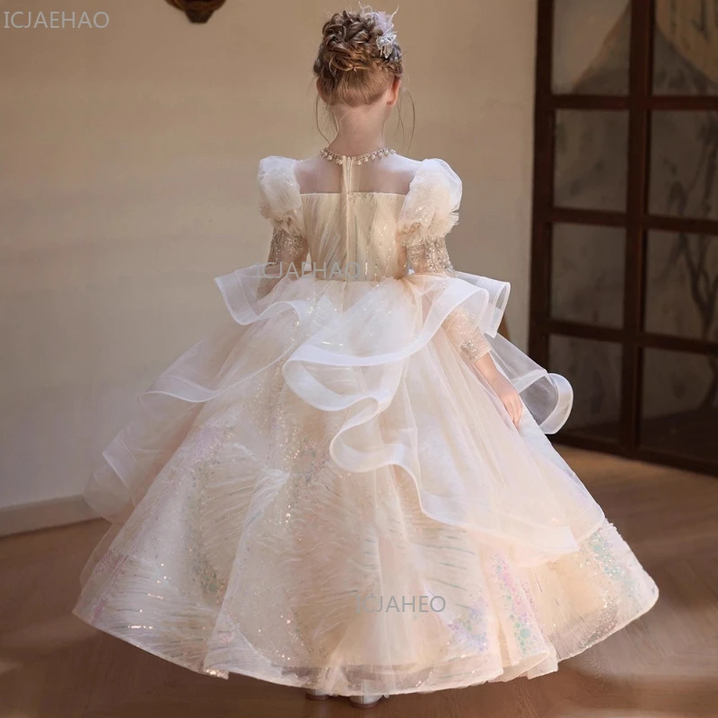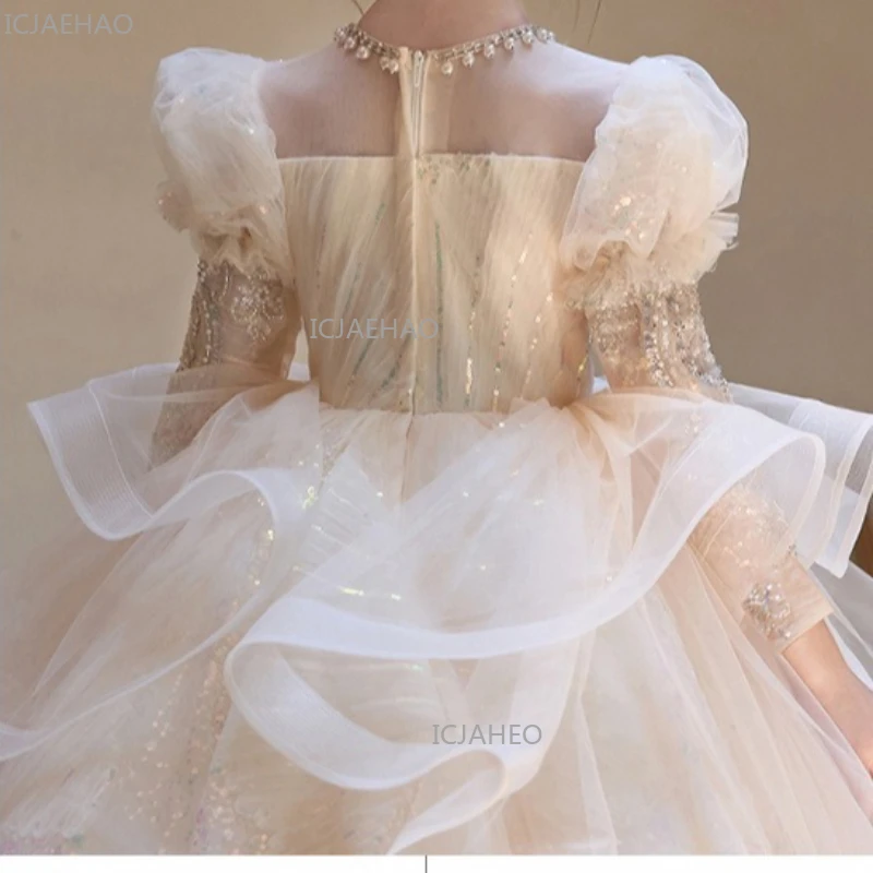 New White Girls Sweet Cute Princess Dress Clothes Kids HostChildren Party Celebration Costume Piano Performance Formal Gown