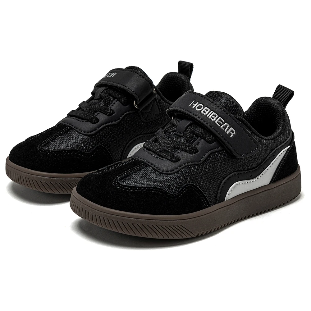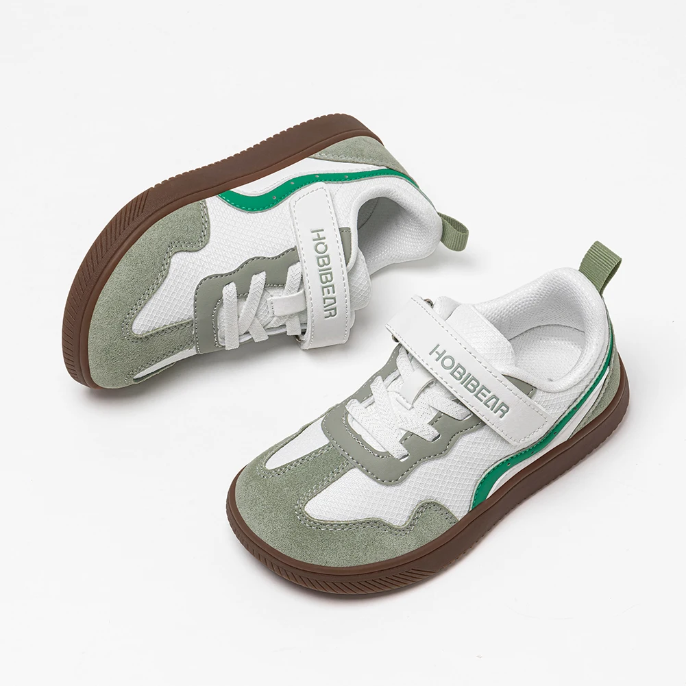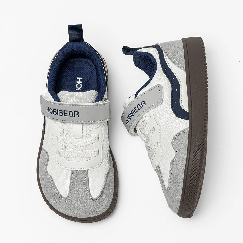 HOBIBEAR Kids Wide Toe Barefoot Shoes Hook Loop Minimalist Sneakers Artificial Leather Mesh Retro Walking Shoes for Big Kid