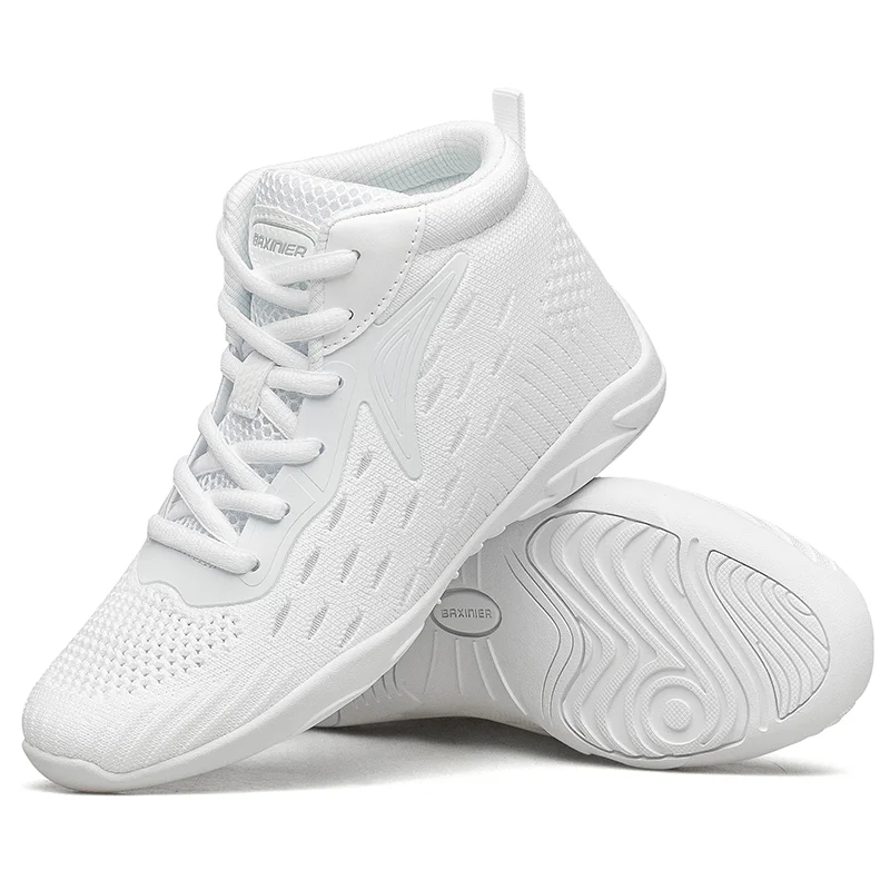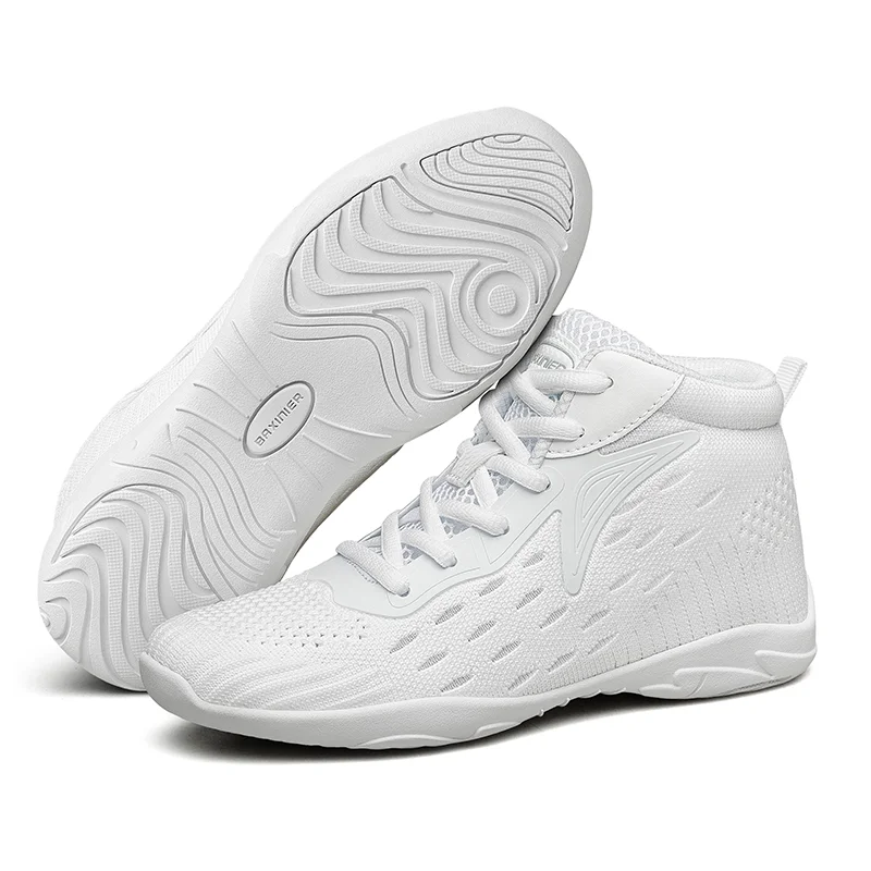 BAXINIER Girls White High Top Cheerleading Shoes Lightweight Youth Cheer Competition Sneakers Kids Training Dance Tennis Shoes