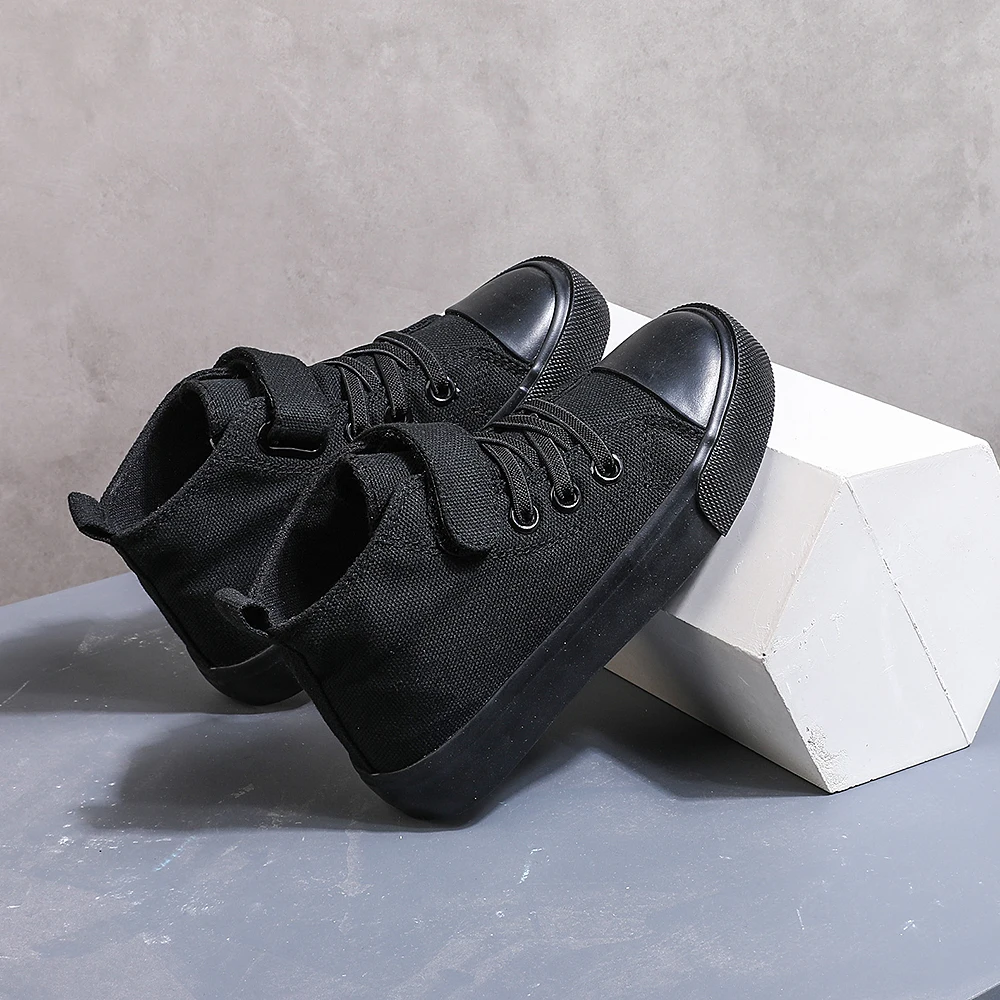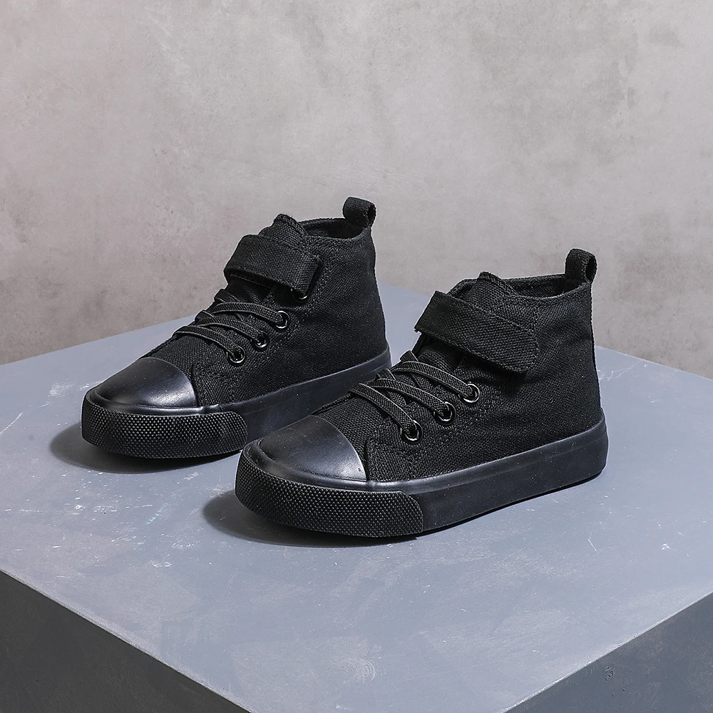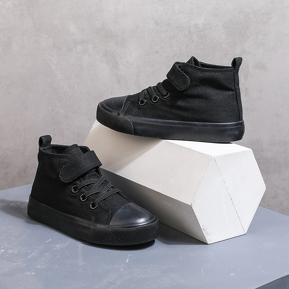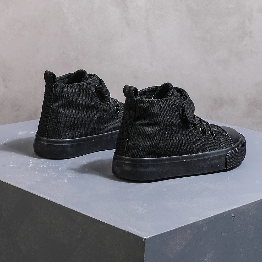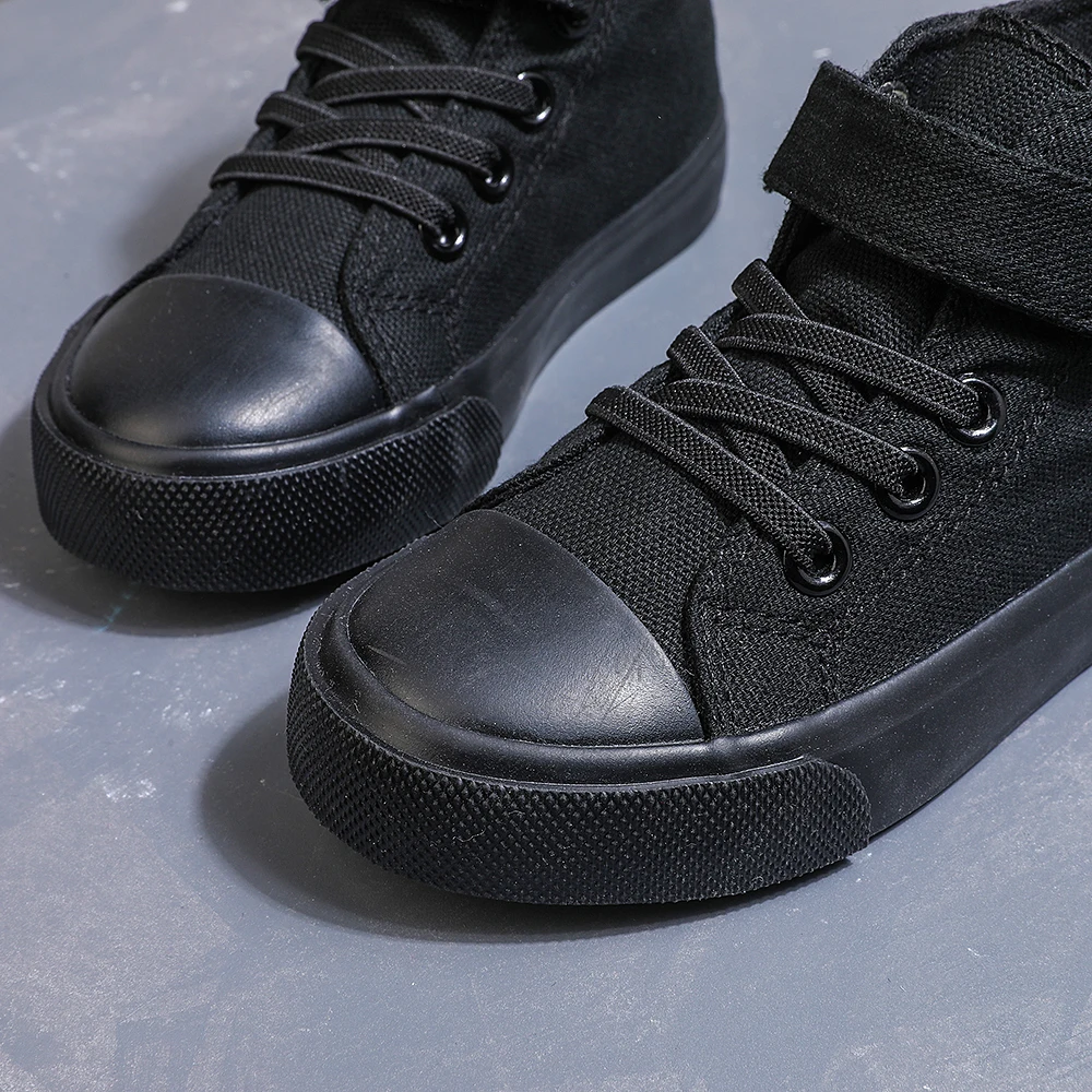 COMFY KIDS Black High-Top Canvas Sneakers, Velcro Strap and Lace-up Shoes for Boys and Girls (Ages 3-12), Comfortable Sports Shoes for Outdoor Play and School