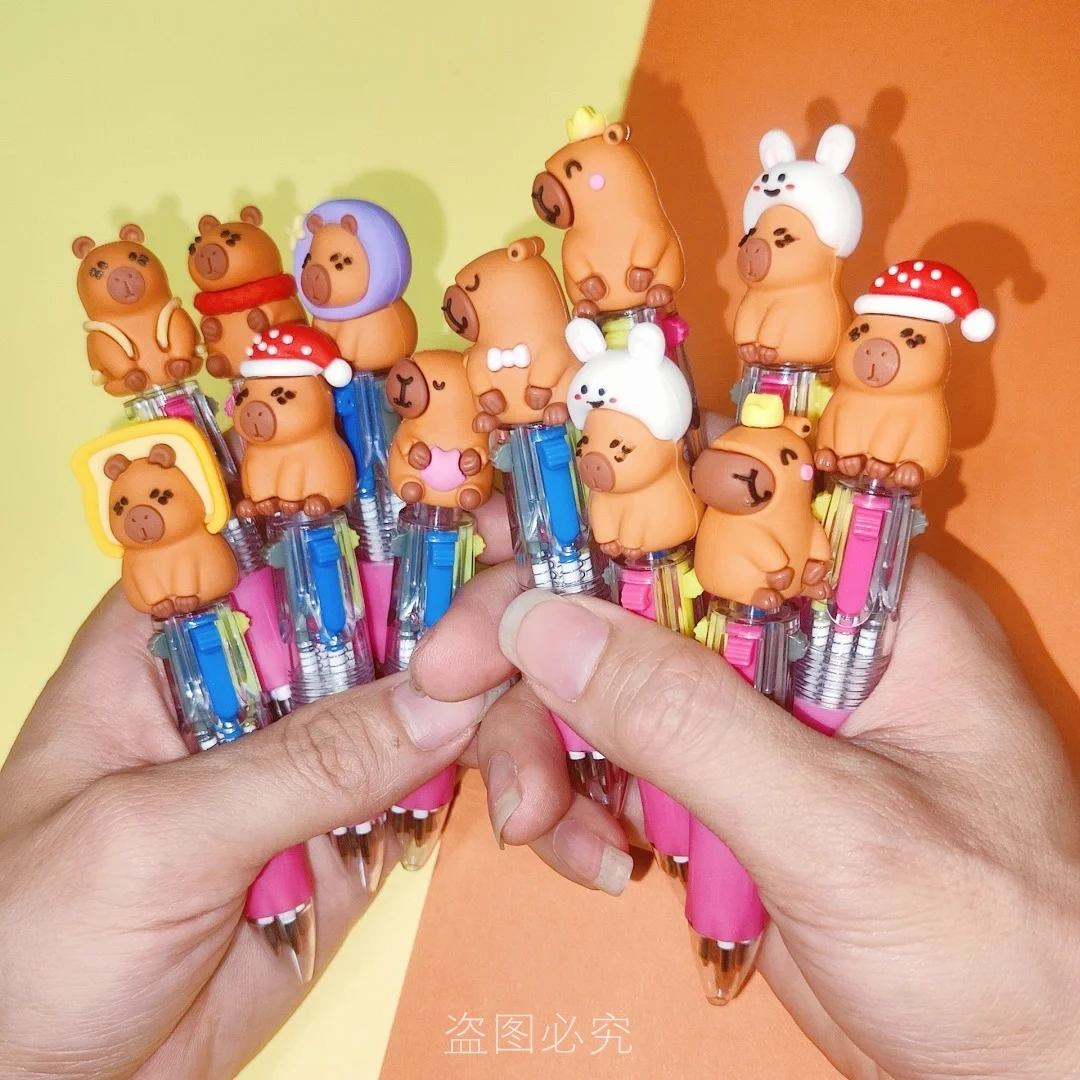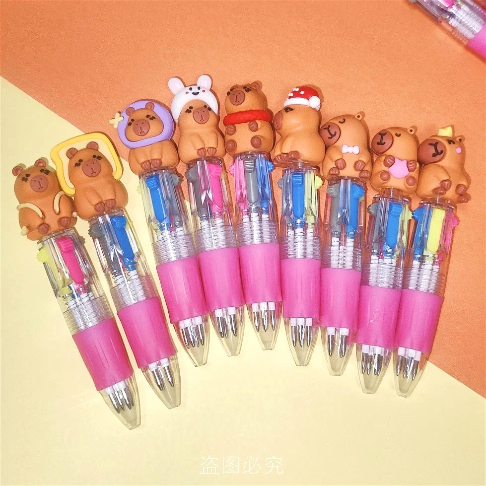 10Pcs/Lot Cute Capybara Mini 4 Colors Ballpoint Pens Kawaii Cartoon Multicolor Pen Kids School Stationery Office Supplies Gifts