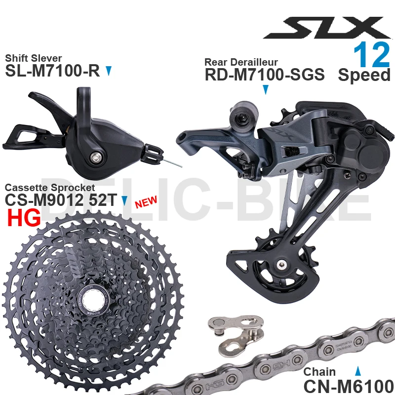SHIMANO SLX M7100 1x12 Speed Groupset with Shifter Rear Derailleur and Cassette Sprocket 11-50T/52T CN-M6100 Chain Original