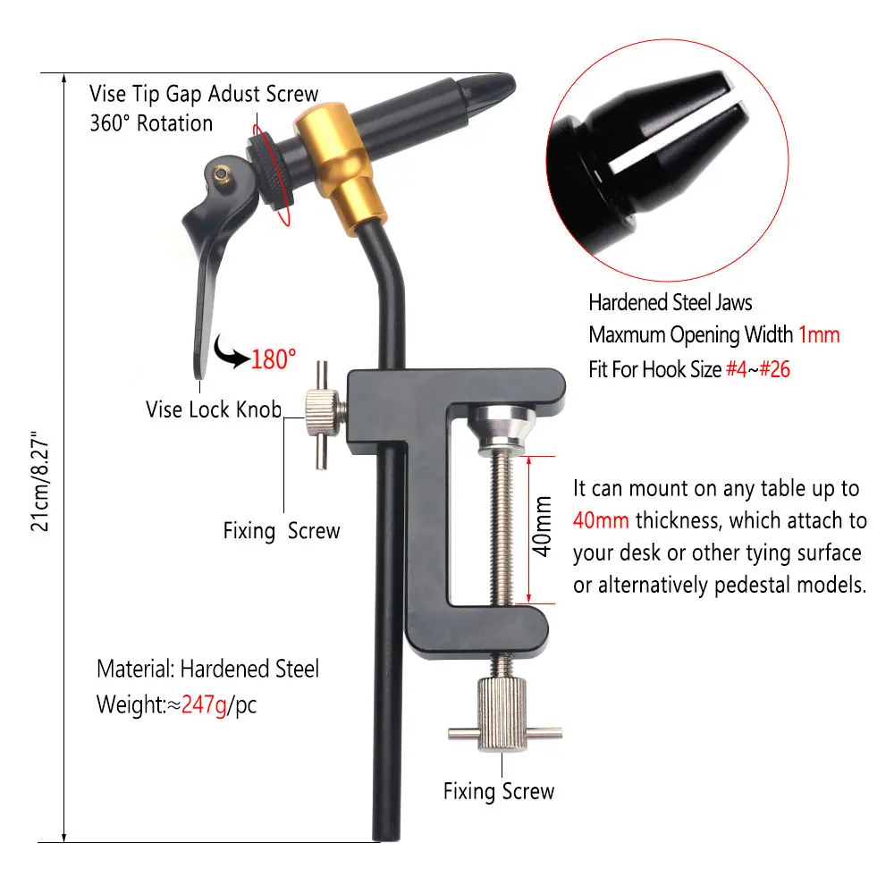 Bimoo Hardened Steel C-clamp Fly Tying Vise Bobbin Holder BobbinThreader Whip Finisher Scissors Fly Tool Kit 50D GSP Thread