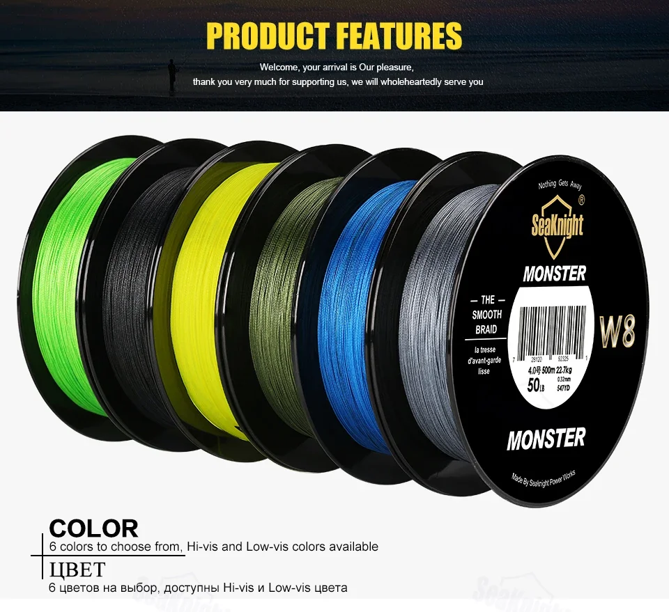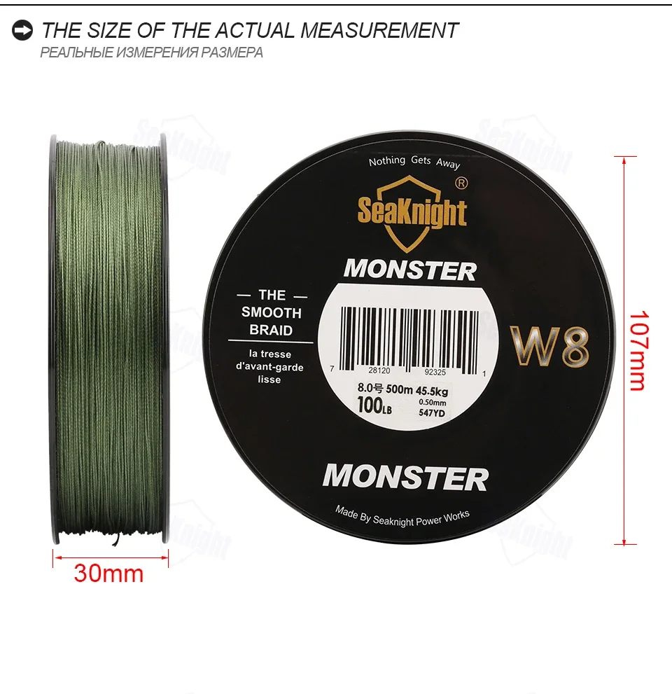 MS Series MONSTER W8 Braided Fishing Line 500M 546YDS 8 Strands Wire PE Multifilament Line Carp Fishing 20 30 40 50 80 100LB