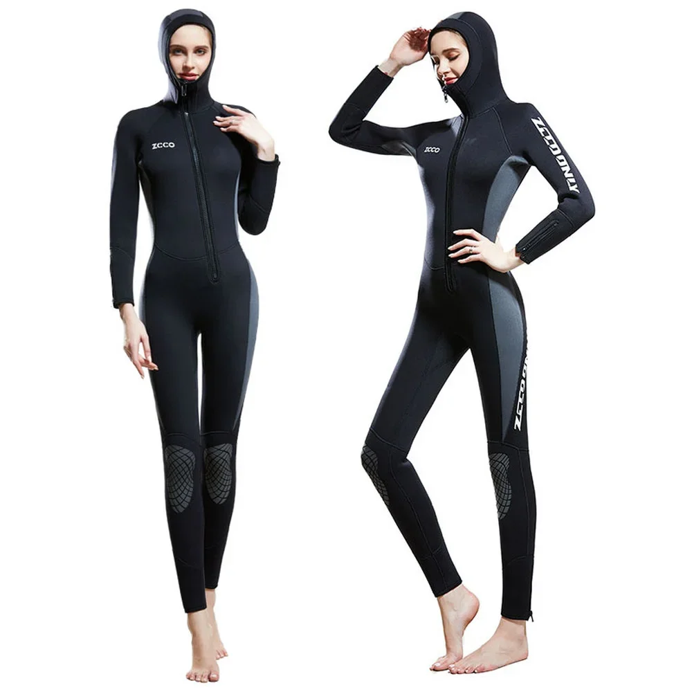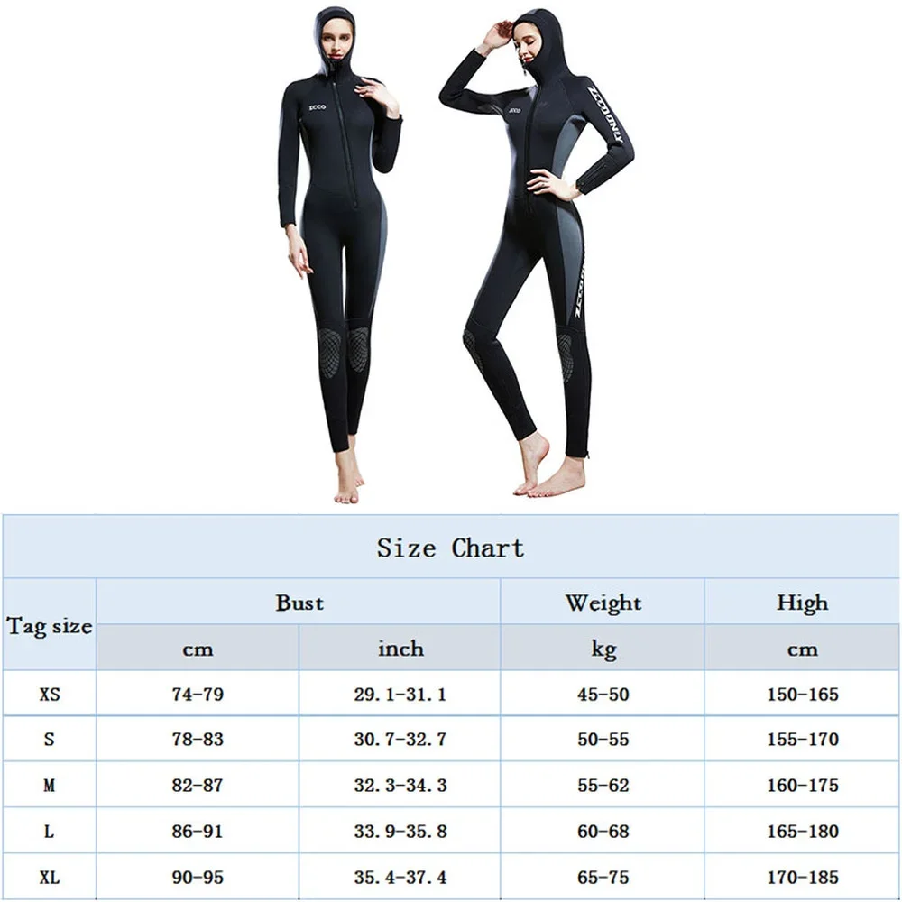 5mm Neoprene Women's Full Body Hooded Wetsuit Winter Keep Warm Thicker Front Zipper Diving Suit Surfing Scuba Snorkeling Suit
