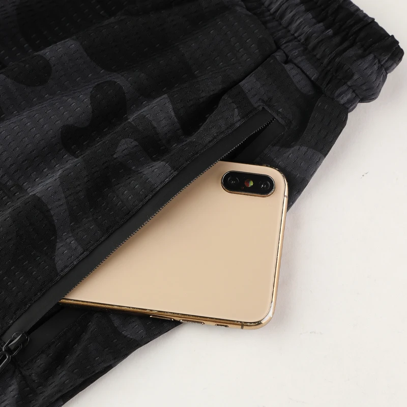 2021 Men Sports Shorts Camouflage Zipper Pocket Running Shorts Mesh Quick Dry Training Fitness Five Pants Breathable Gym Shorts