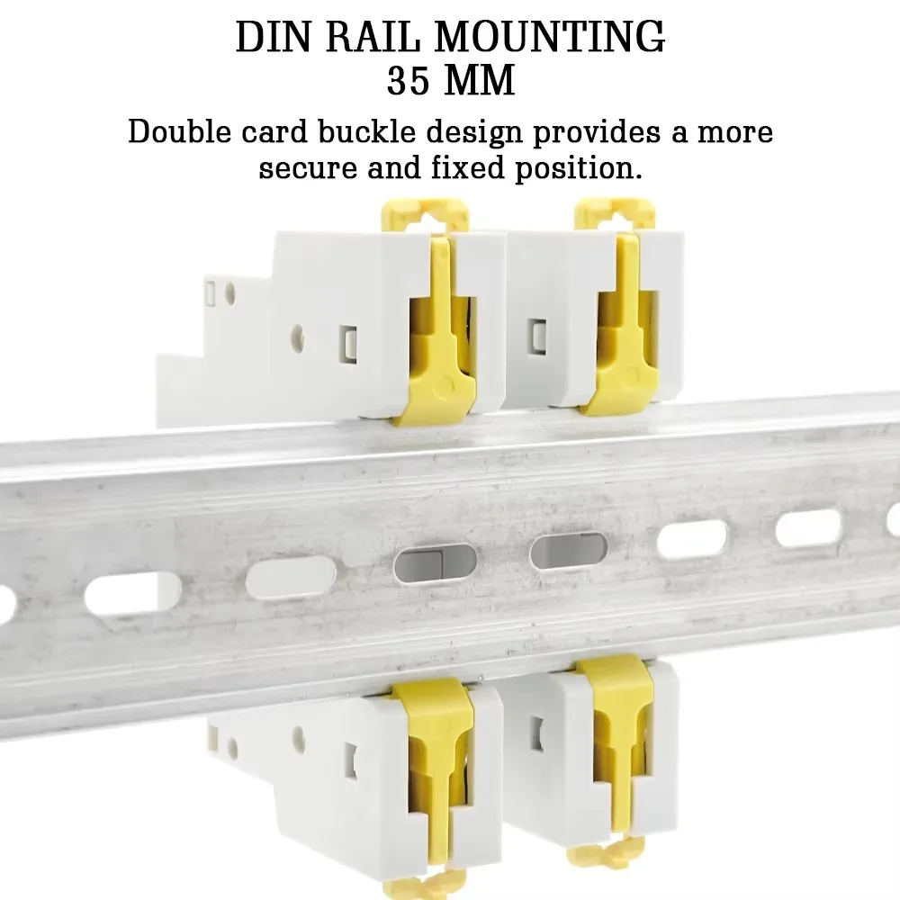 - Compact DIN rail mount design allows for easy installation in industrial or household electrical panels