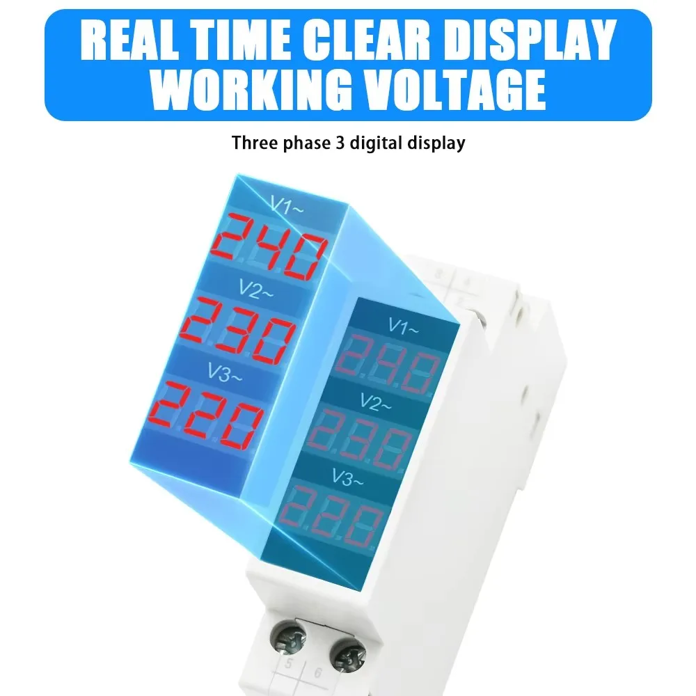 18MM Din Rail Mount Single Three Phase Voltage Meter AC 80-500V Modular Voltmeter Gauge Indicator LED Digital Display Detector