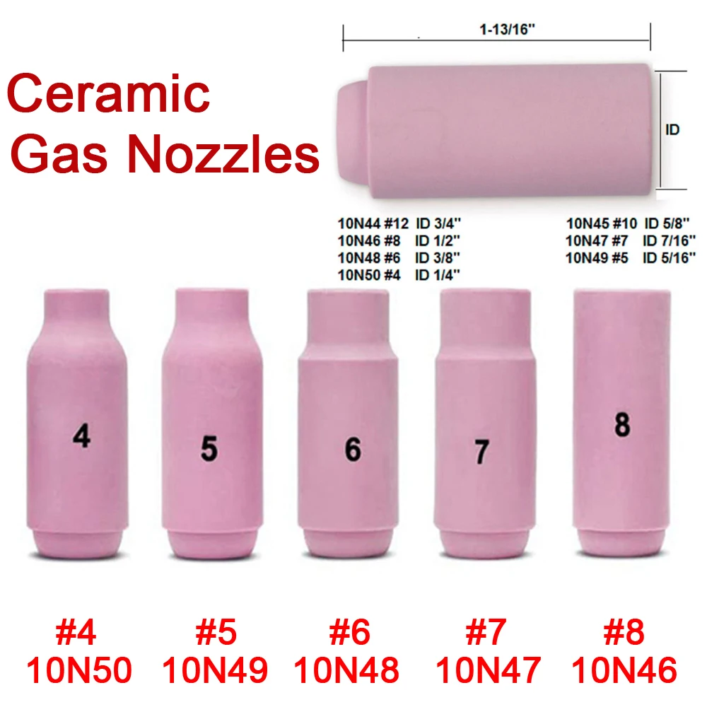 12Pcs TIG Welding Torch Consumable Collect Bodies Ceramic Nozzles Back Cap For WP17 WP18 WP26 Durable Practical Accessories