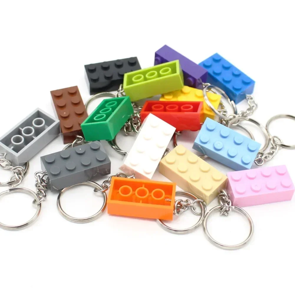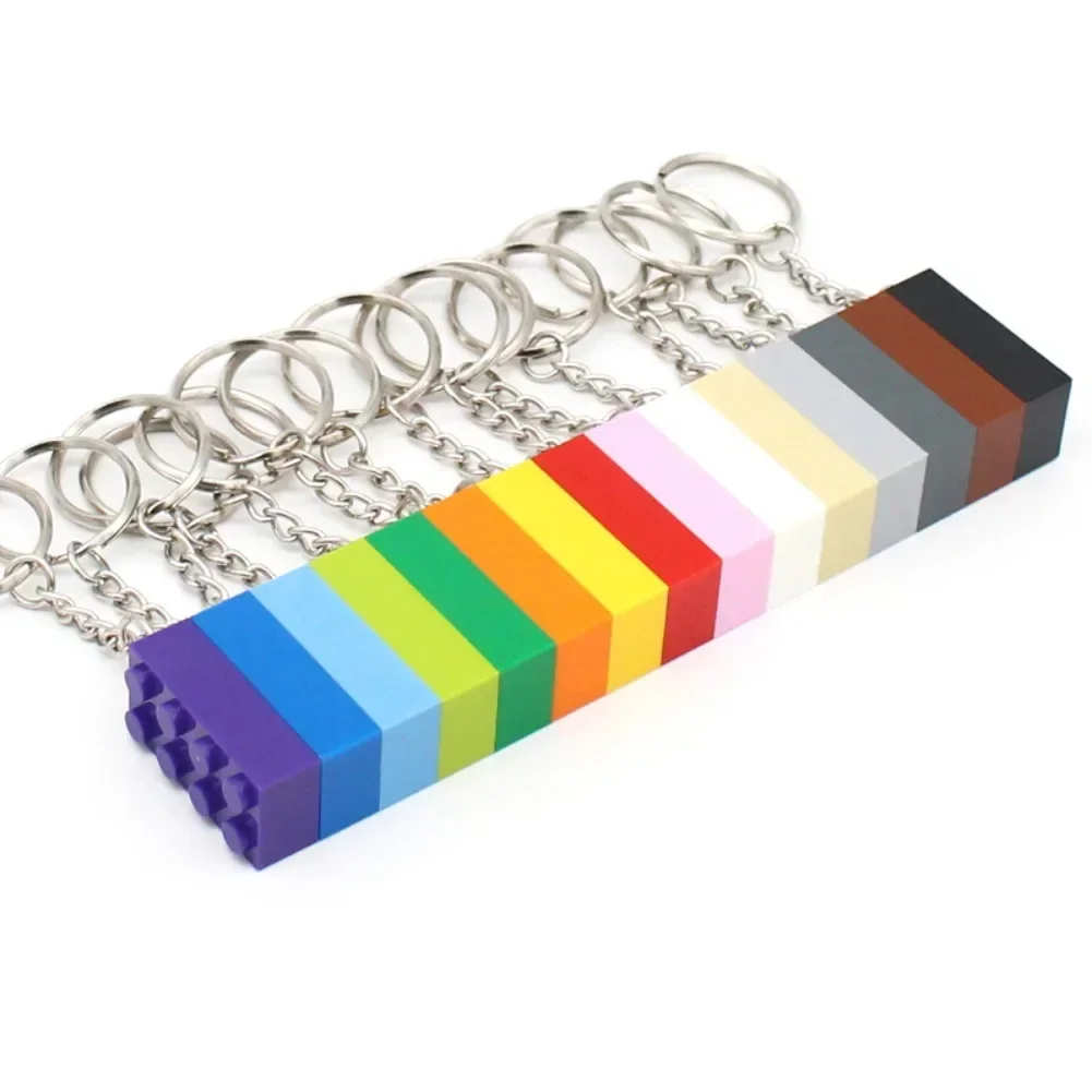 10pcs DIY MOC Brick Keychain Plate Thick Bricks 2x4 3001 Key Chain Building Block Xmas Gift for Kids Compatible with Legoeds