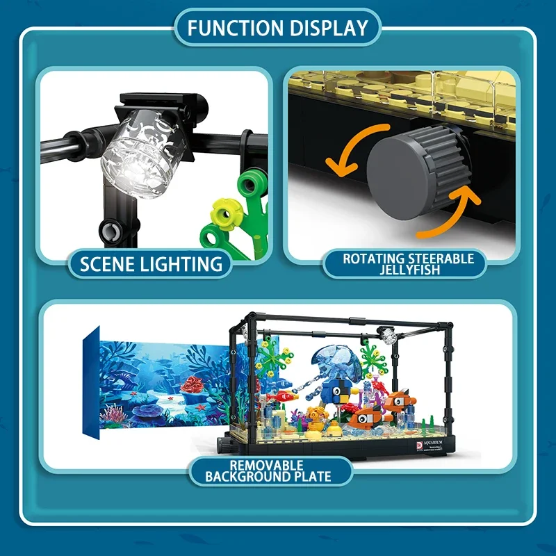 Fishbowl Aquarium Series Building Blocks Sea Turtle Jellyfish Fish Tank With Light Seafloor Assemble Bricks Toy For Children Kid