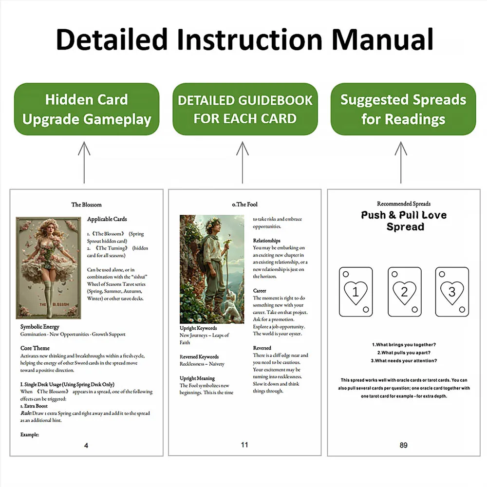 Tarot Cards for Beginners with Guidebook, Spring Sprout Tarot Deck, 80 Oracle and Tarot Cards, Cards with Gilded Learning Edge