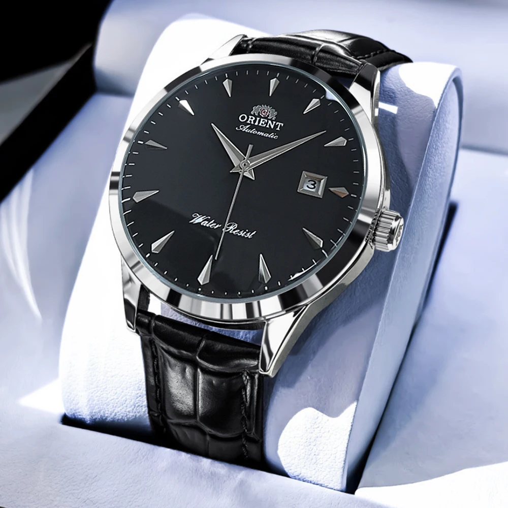 Orient Automatic Men's Watch, Black Dial Stainless Steel Band, Water Resistant Classic Business Wristwatch with Date Display